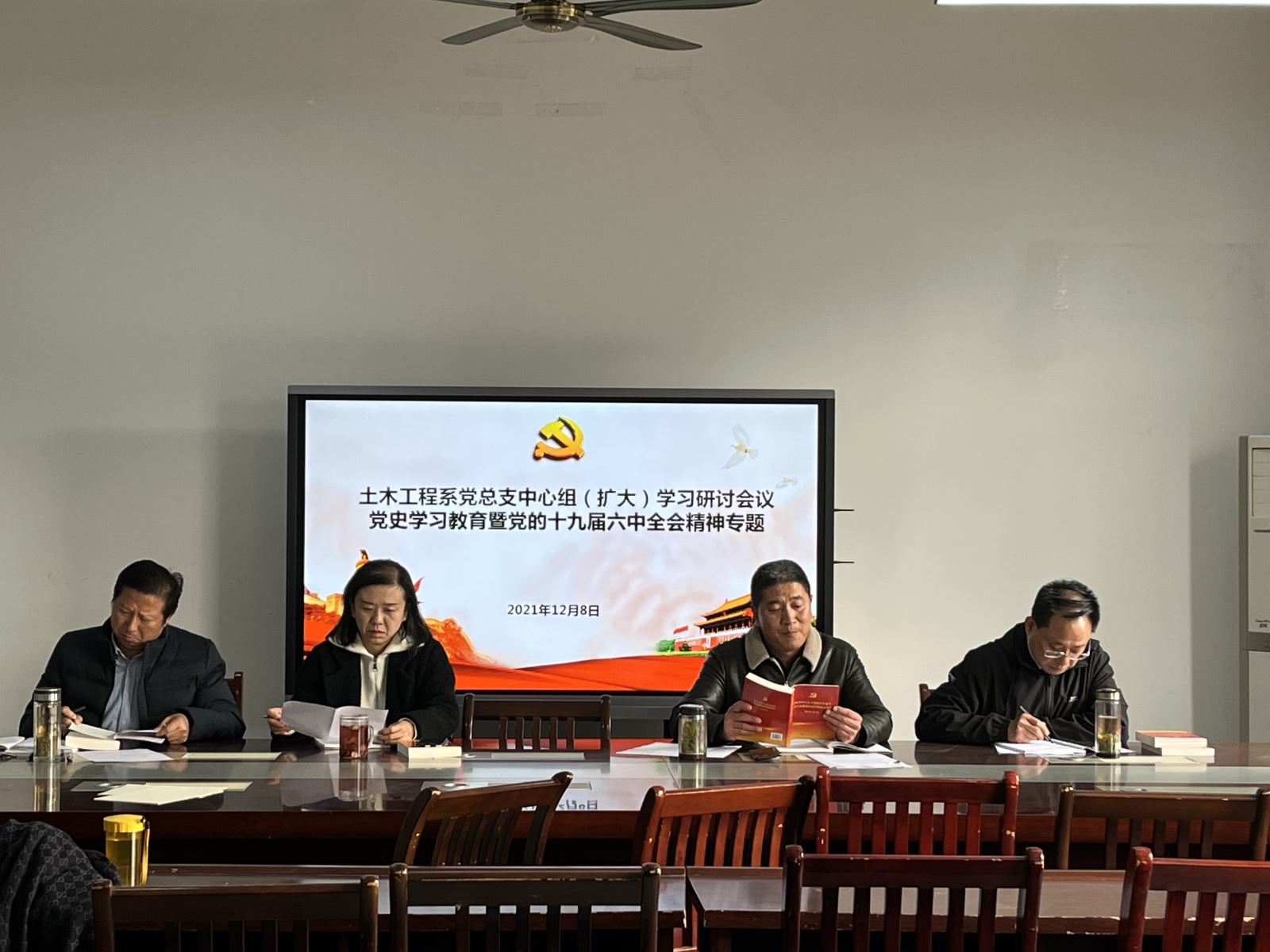 12月8日下午,土木系黨總支召開中心組(擴大)學習研討會議,專題學習研討黨的十九屆六中全會精神。會議旨在加強對全會精神的學習,暢談如何用全會精神來指導未來的工作和學習,進一步統一思想、凝聚力量,助推土木系實現高質量發展。系領導、副科級以上干部、各支部書記參加學習交流。