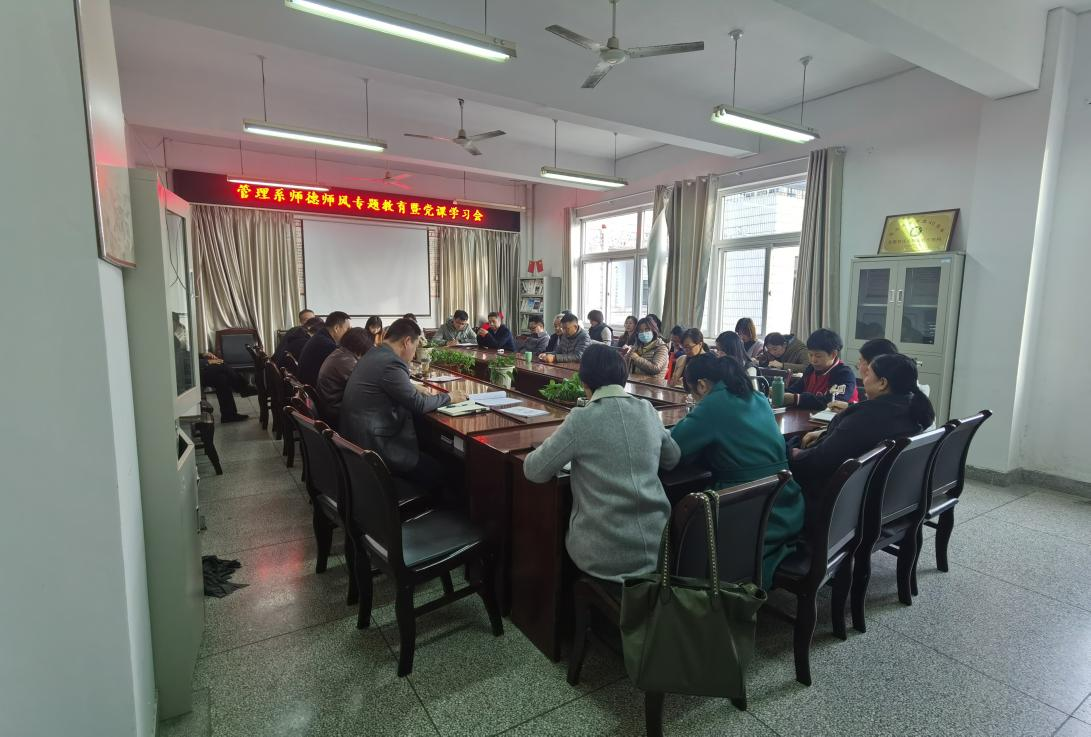 為深入開展師德師風專題教育與黨史學習教育,11月10日,管理系召開師德師風專題教育暨黨課學習會。會議由管理系黨總支書記汪思曼主持,系全體教師參加會議。