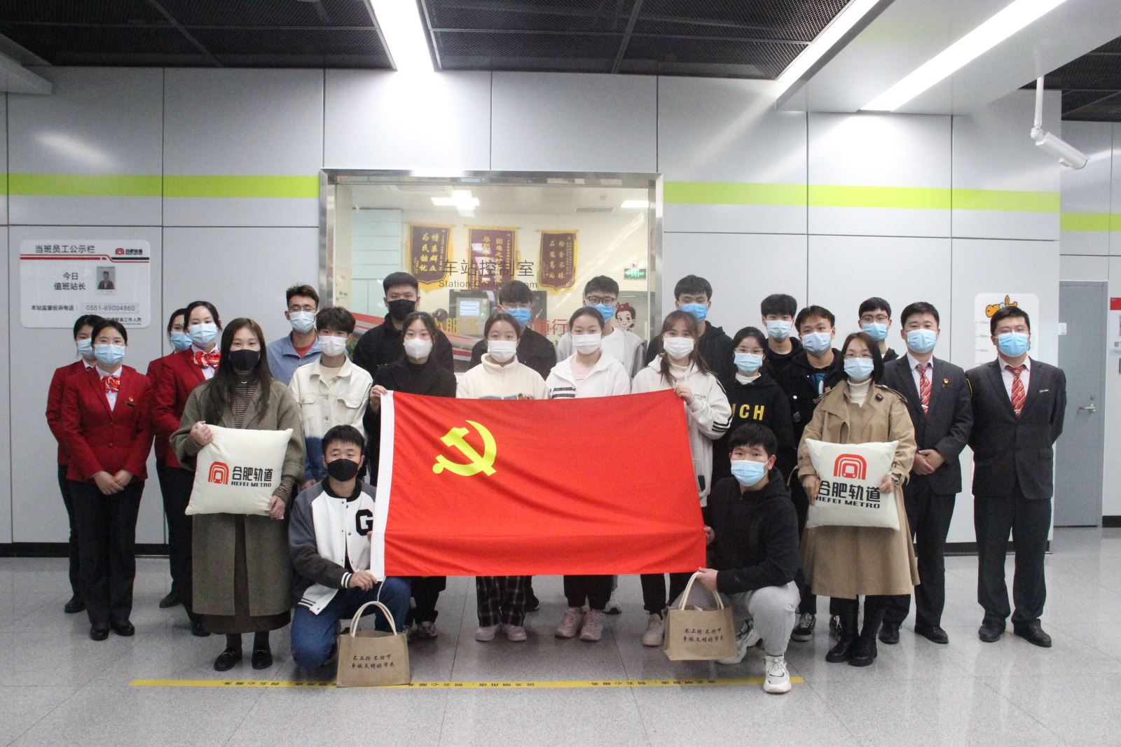 為讓全體志愿者能夠盡快了解和熟悉地鐵志愿服務(wù)的場所與項目,11月12日,帶隊負(fù)責(zé)人徐海霞、李思琪老師和全體志愿服務(wù)者前往合肥地鐵云谷路站進(jìn)行活動前的培訓(xùn)參觀。在九聯(lián)圩副站長唐鑫和專工周曄的帶領(lǐng)下,大家集體參觀、學(xué)習(xí)了解了車站的設(shè)備與功能,并著重參觀了設(shè)備用房、站廳層、站臺層,在一一了解它們的功能和作用的同時,并熟悉了解了車站的環(huán)境,為志愿服務(wù)的順利高效的開展奠定了基礎(chǔ)。隨后,志愿者們集體參觀了合肥軌道九聯(lián)圩站的黨史宣傳欄,聆聽副站長唐鑫和專工周曄的講話,詳細(xì)了解車站的黨建工作和發(fā)展歷程。通過細(xì)致了解車站的黨史、建設(shè)史,同學(xué)們紛紛表示,要進(jìn)一步堅定聽黨話、跟黨走的信念,立足學(xué)業(yè),學(xué)好本領(lǐng),凝聚守初心、強(qiáng)本領(lǐng)的磅礴力量,在實現(xiàn)中華民族偉大復(fù)興的征程中貢獻(xiàn)自己的一份力量。