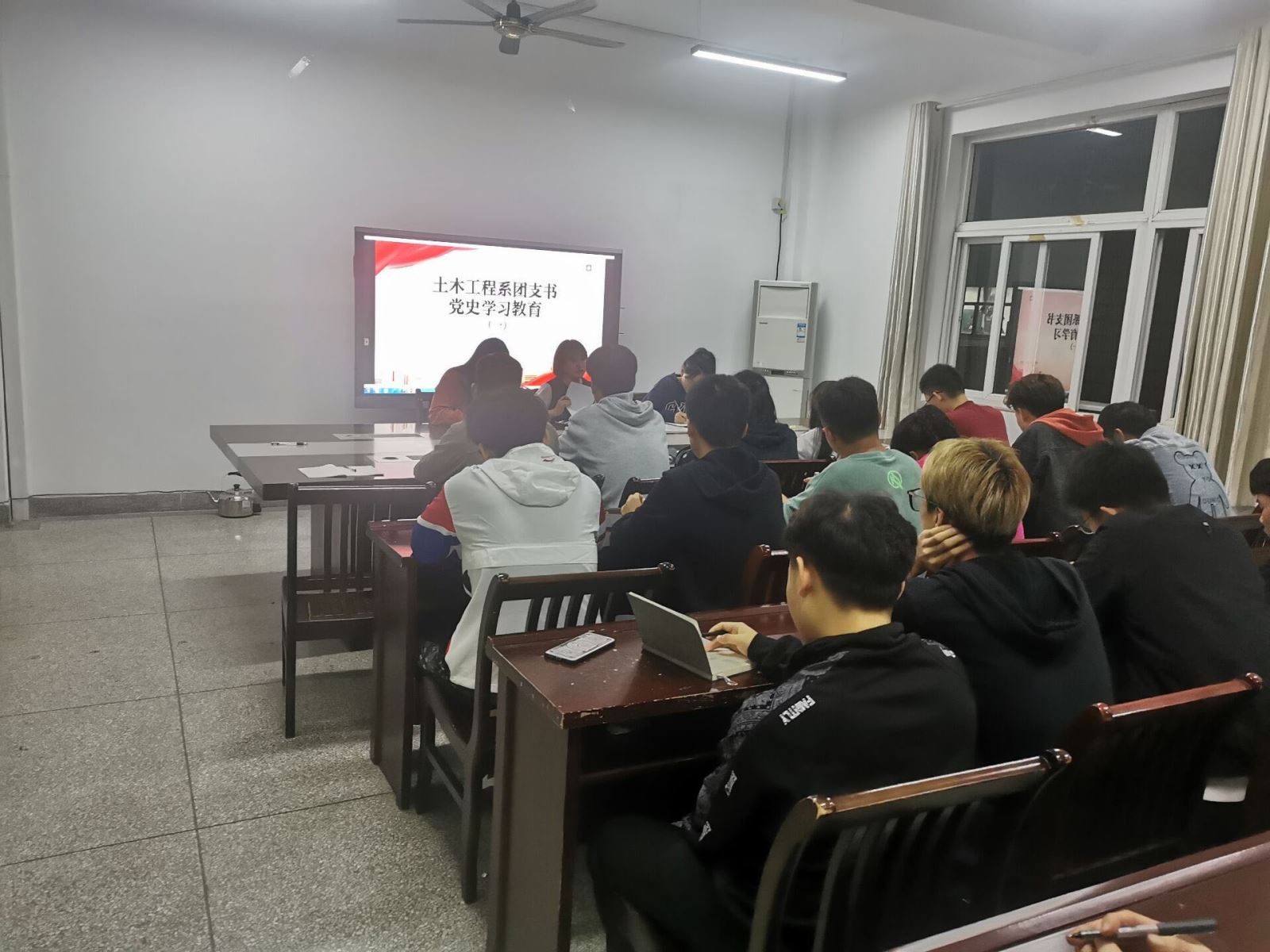 10月13日晚,土木系在會議室開展“土木工程系團支書黨史學習教育”主題團課,團課由張靜、武慶媛老師主講,20、21級各班團支書參加學習。