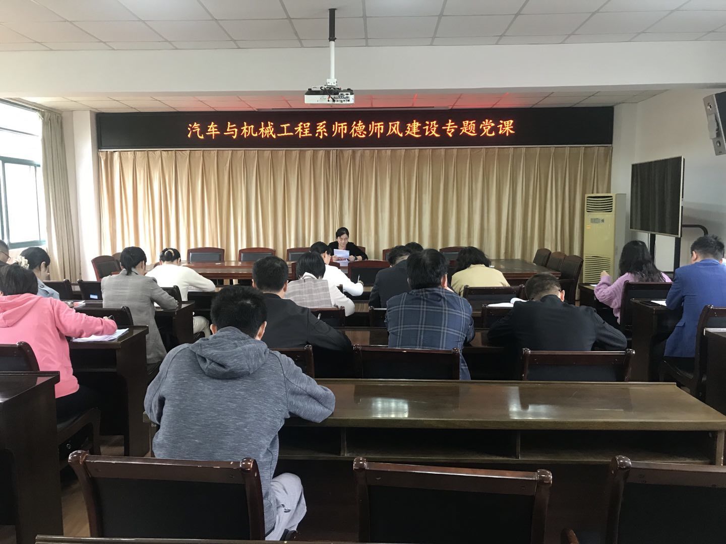 為進(jìn)一步推進(jìn)師德師風(fēng)專題教育活動,提高教職工思想政治素質(zhì)和職業(yè)道德水平,教育引導(dǎo)教師爭做“四有”好老師,10月13日下午,汽機(jī)系黨總支副書記、主任梁洪波以《立德樹人,做好學(xué)生前進(jìn)路上的引路人》為題作師德師風(fēng)建設(shè)專題黨課,汽機(jī)系全體教職工聆聽了黨課。