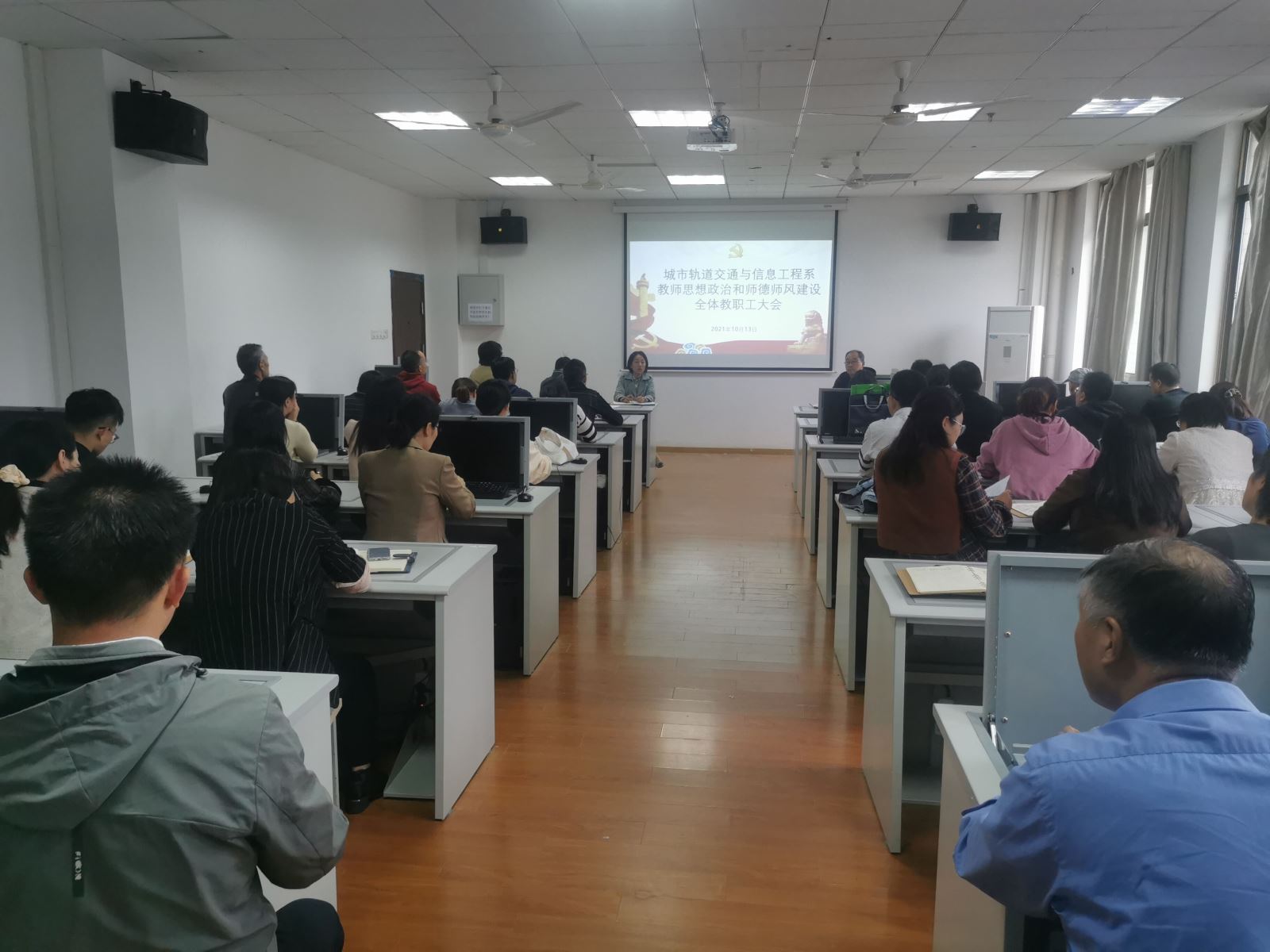 10月13日,城信系召開(kāi)教師思想政治和師德師風(fēng)建設(shè)全體教職工大會(huì),系黨總支書(shū)記汪倩主持會(huì)議,系領(lǐng)導(dǎo)班子與全體教職工參會(huì)。