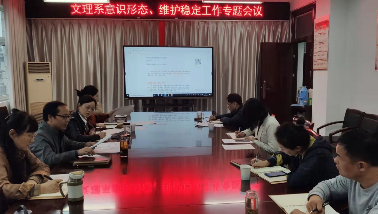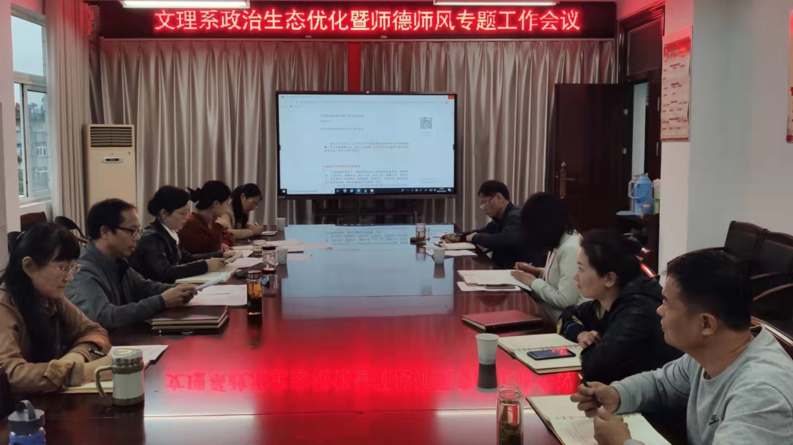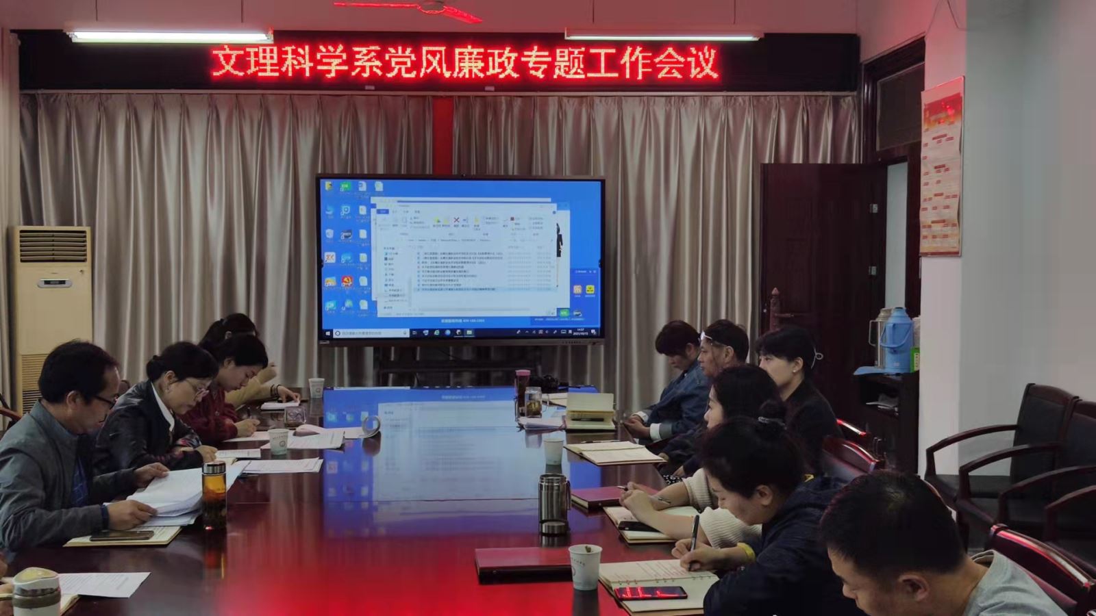 10月15日,文理系黨總支副書記、系副主任(全面主持工作)昌希燦主持召開系黨風廉政建設、政治生態(tài)優(yōu)化暨師德師風建設、意識形態(tài)暨安全維穩(wěn)工作、人才培養(yǎng)工作等四項專題會議,并就上述工作作出下一步研究部署。系黨總支副書記、副主任王玨,系黨總支委員,相關人員參加會議。
