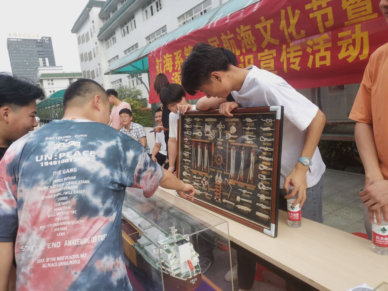 5月下旬航海系舉辦了航海船模展活動,將船模、錨、舵輪等搬到戶外讓全校師生共同欣賞,路過的師生們興趣濃厚,紛紛駐留觀賞。航海系學生運用自身所學專業知識,熱心地向大家普及船舶知識。