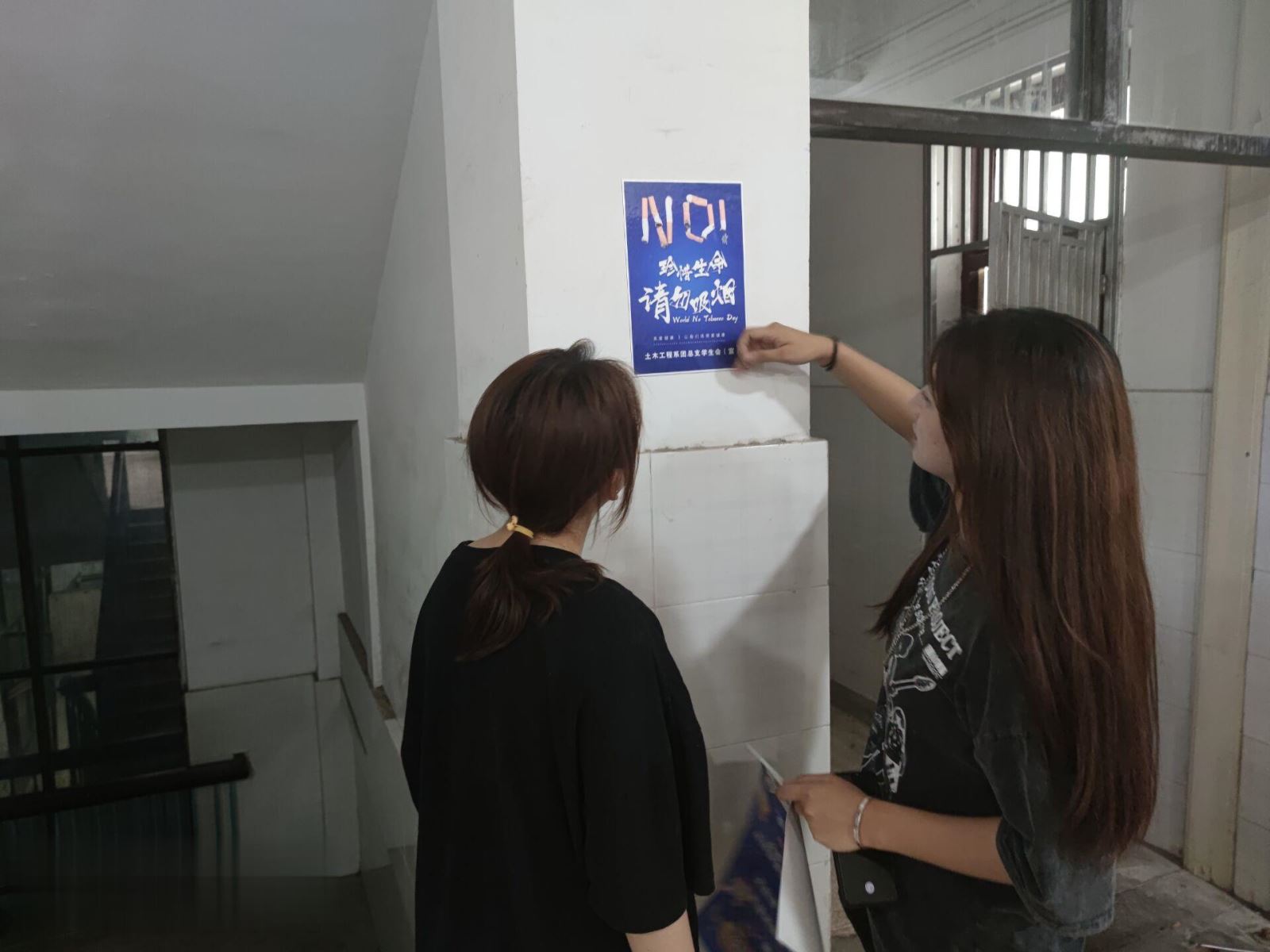 6月22日晚,土木系組織開展倡導(dǎo)學(xué)生注意儀容儀表及禁止吸煙活動(dòng),土木系黨總支副書記朱蓉、團(tuán)總支書記張靜、團(tuán)學(xué)武慶媛老師參與活動(dòng)。土木系團(tuán)總支學(xué)生會(huì)同學(xué)利用晚自習(xí)時(shí)間進(jìn)班宣傳講解,并制作宣傳海報(bào)張貼在自習(xí)教室及教學(xué)樓和寢室樓的宣傳欄中。