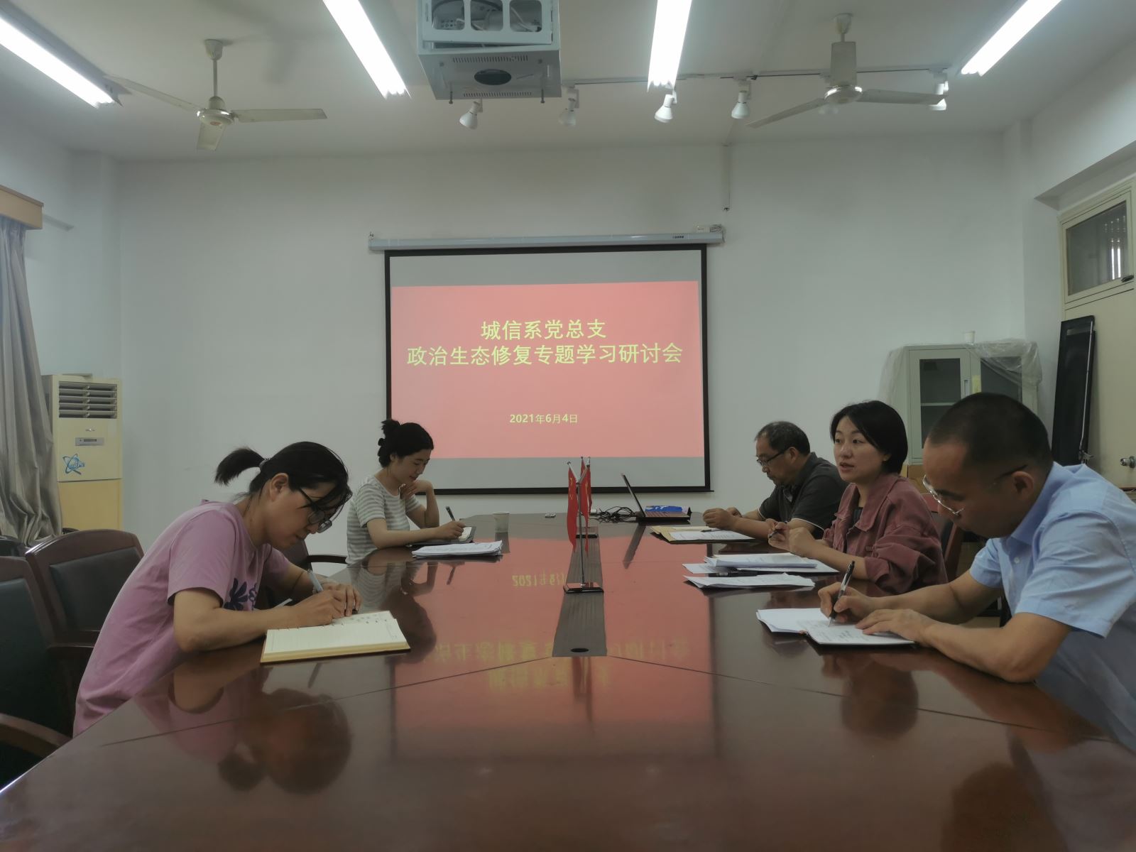 6月4日上午,城信系黨總支召開中心組學習會暨黨史學習教育、新一輪深化“三個以案”專題警示教育、政治生態修復專題學習研討會。系黨總支書記汪倩主持會議,系黨總支委員參會。
