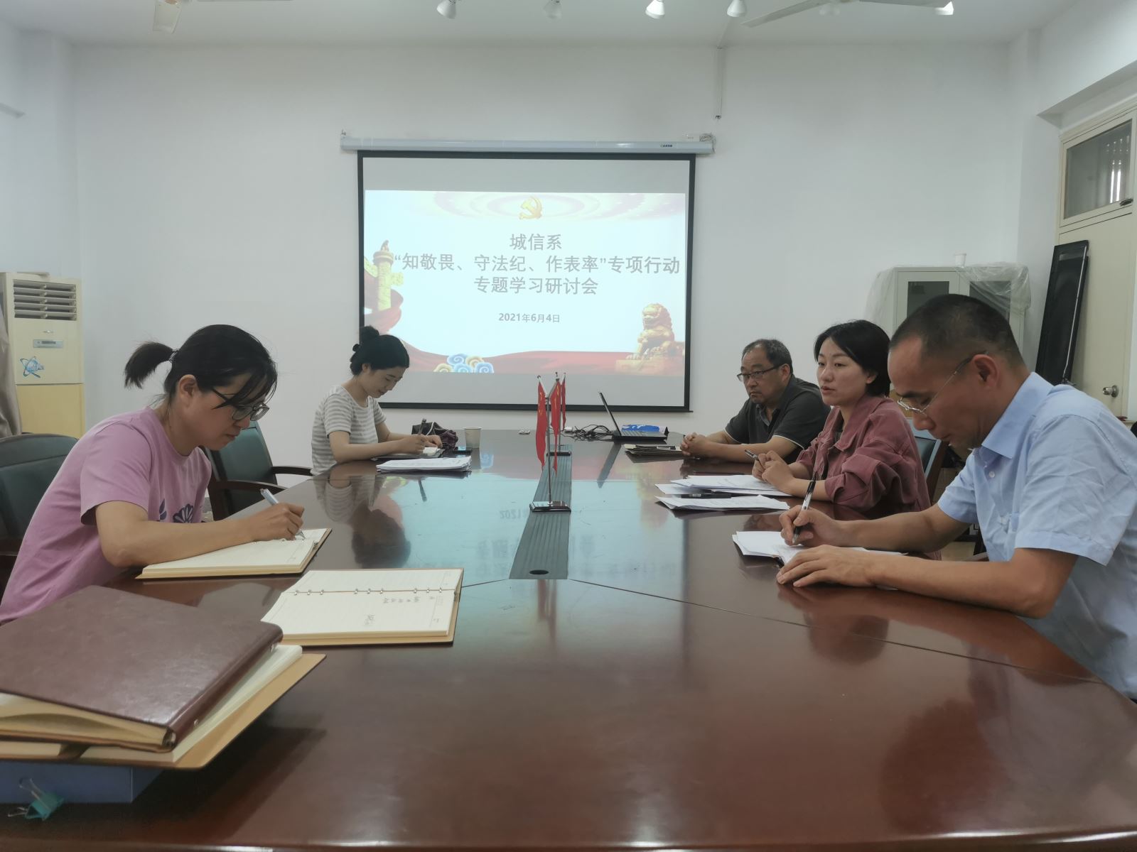 6月4日下午,城信系黨總支召開“知敬畏、守法紀、作表率”專項行動專題學習會。系黨總支書記汪倩主持會議。系黨總支委員參會。