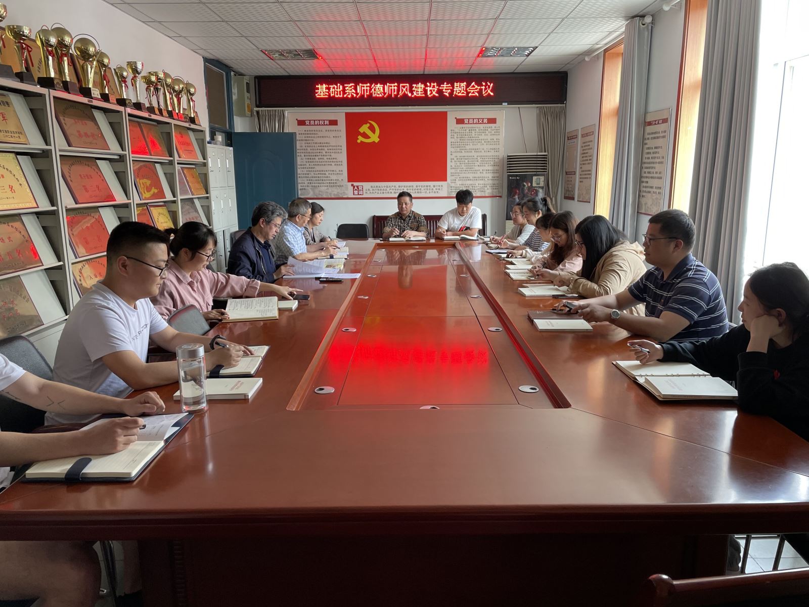 5月21日下午,基礎系召開師德師風建設專題會議,系黨總支書記邵登泰主持會議,全體教職工參加。