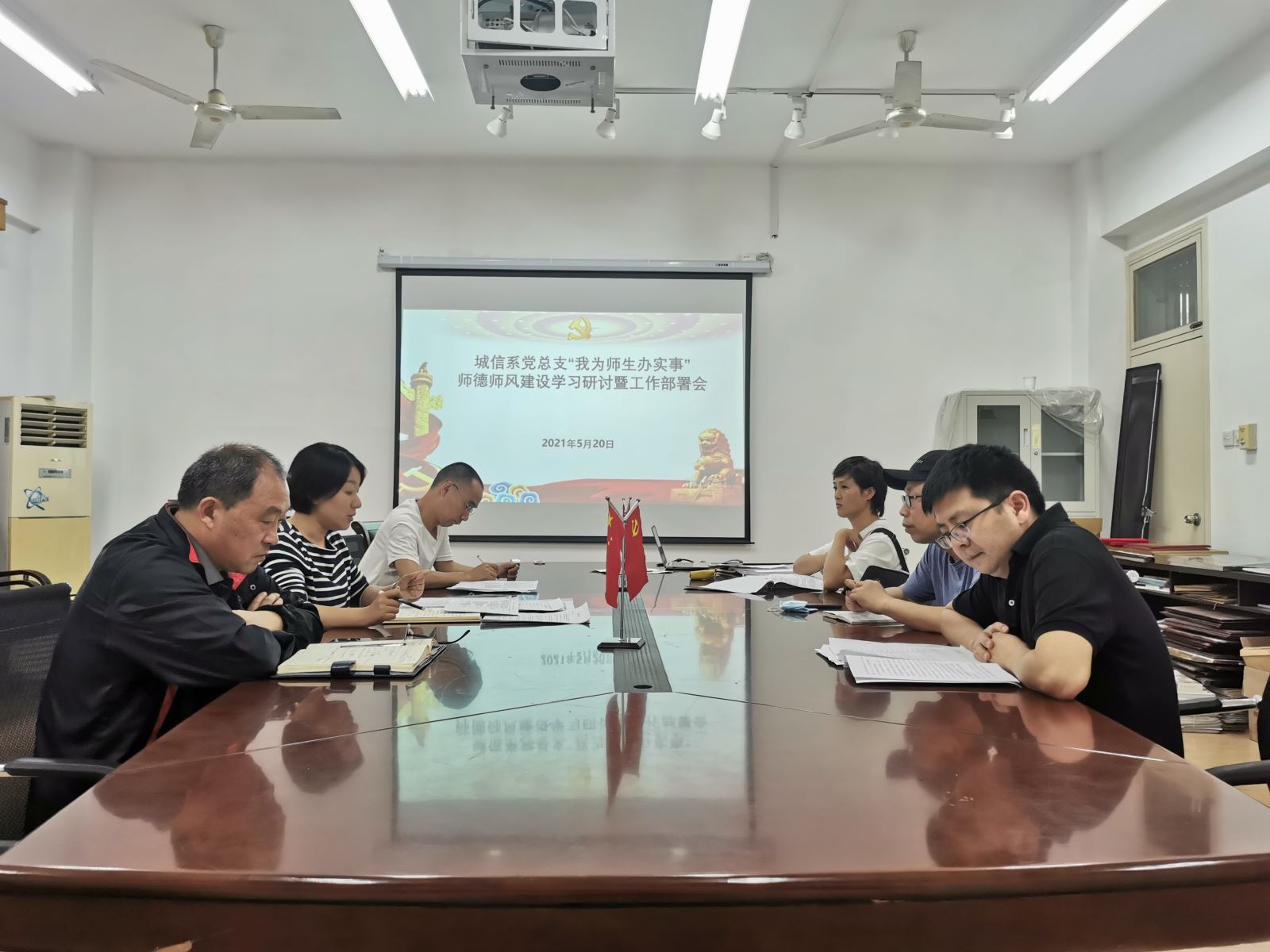 5月20日,城信系各教研室分別召開師德師風建設專題學習研討會,各教研室主任主持會議,全體教職工參會。