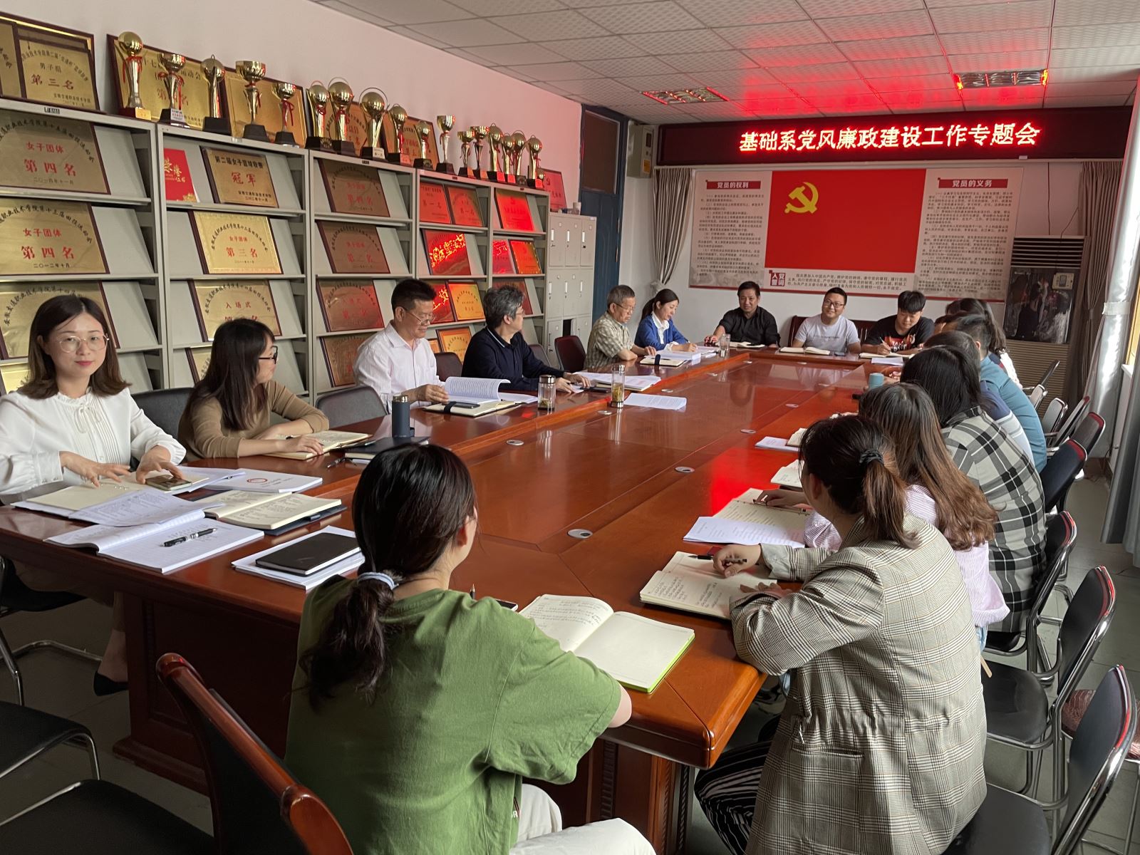 會議第三部分通報并布置近期工作。會上通報了黨史學習教育 新一輪深化“三個以案”警示教育工作情況、巡視整改工作情況、政治修復工作情況。并對其中教學檢查、常態(tài)化疫情防控工作及師生疫苗接種、學院運動會等近期重點工作做出提前布置,確保責任到人,政策和任務得到落實。(基礎(chǔ)系 魏笑君)