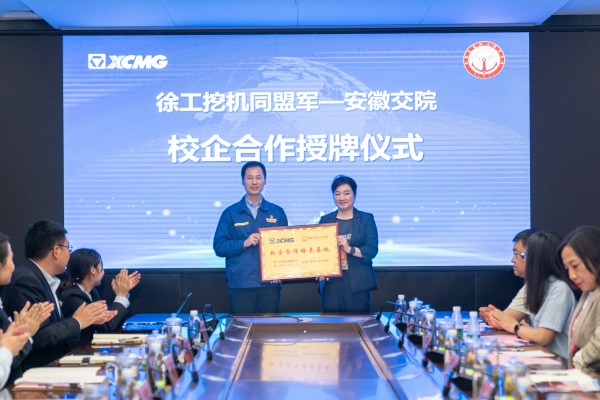 交流會上,于愛軍重點介紹了徐工集團歷史文化、徐工挖機產品產能、校企合作發展思路等情況;張松松對徐工集團校企合作“儲鷹計劃”校企合作項目具體方案進行了詳細說明。梁洪波介紹了我院發展歷程、汽車與機械工程系辦學基礎、校企合作開展情況,隨后就訂單班學生培養、退役士兵培訓基地建設、校企合作開發教材及實訓基地共建等方面提出了建議,為校企雙方進一步深化合作開拓了思路、拓寬了路徑。隨后,舉行了“校企合作培養基地”授牌儀式,于愛軍代表企業為我院進行授牌。會后,校企雙方一起參觀了徐工集團展廳、徐工挖掘機智能生產線、徐工集團商學院基地。