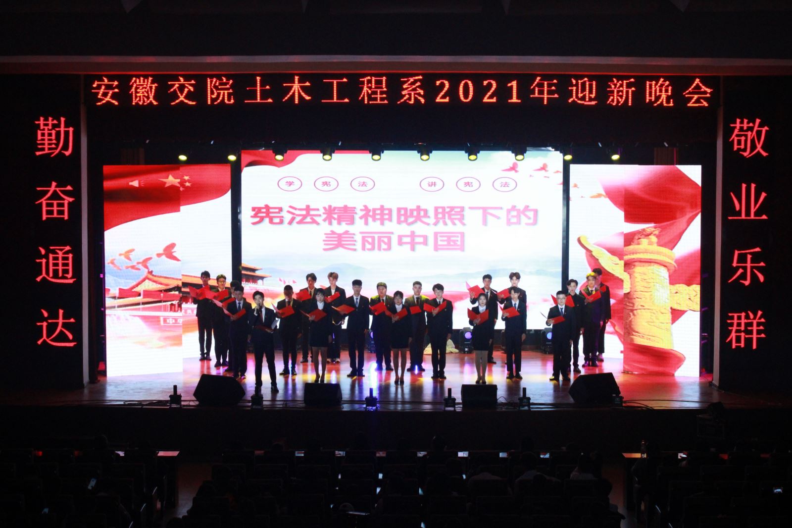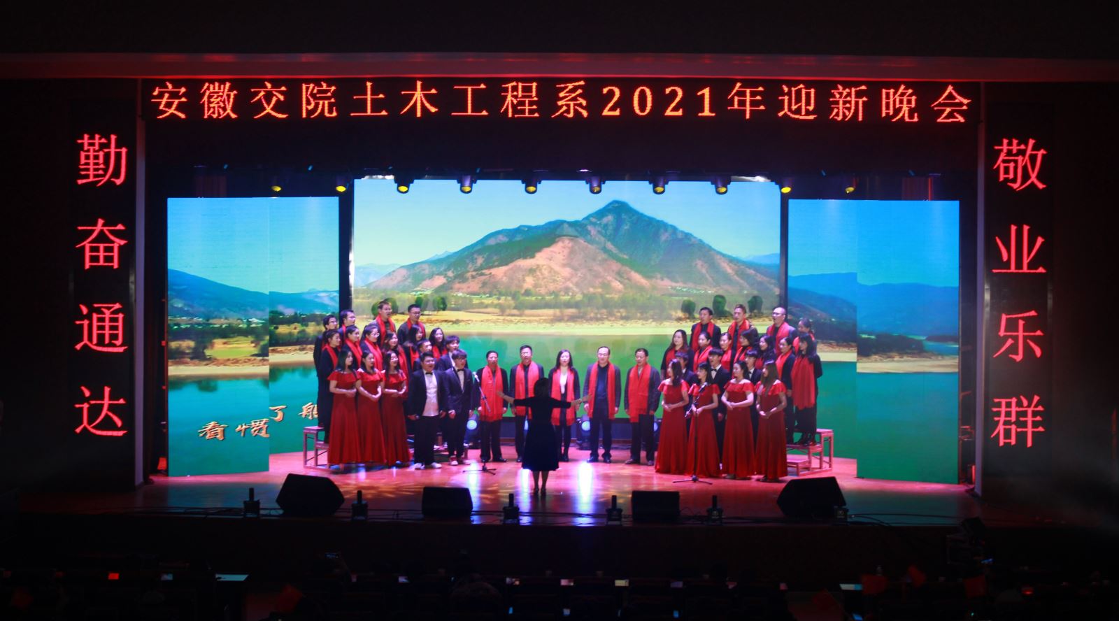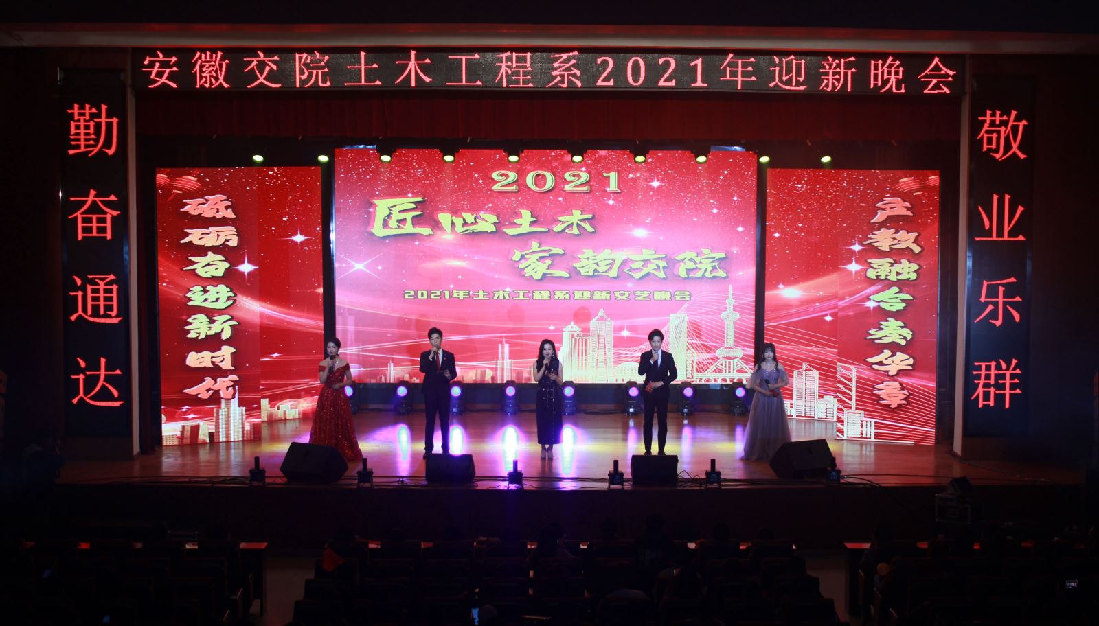 12月28日晚,土木工程系2021年元旦師生聯(lián)歡會在南區(qū)大禮堂成功舉行。土木工程系黨總支書記鄒建華、黨總支副書記、主任王常才、成教部主任李揚(yáng)、系黨總支副書記朱蓉、副主任肖玉德、王守勝,以及安徽路橋集團(tuán)檢測公司副總經(jīng)理佐群、辦公室主任張鵬、人力資源部部長黃玲玲,安徽新路集團(tuán)人力資源部部長魏靜、安徽開源路橋公司人力資源部經(jīng)理張奇、安徽水安集團(tuán)人力資源部部長章天意、黃山新洲集團(tuán)副總經(jīng)理李小龍、安徽交建股份公司人力資源部部長沈艷軍、高速監(jiān)理公司工會主席劉丙軍等合作企業(yè)代表,與數(shù)百名師生一道觀看了演出。晚會由安徽天鷺控股集團(tuán)黨支部書記、經(jīng)營總裁曹家云女士與我系學(xué)生共同主持。此次聯(lián)歡會由土木工程系團(tuán)總支主辦,系學(xué)生會承辦。
