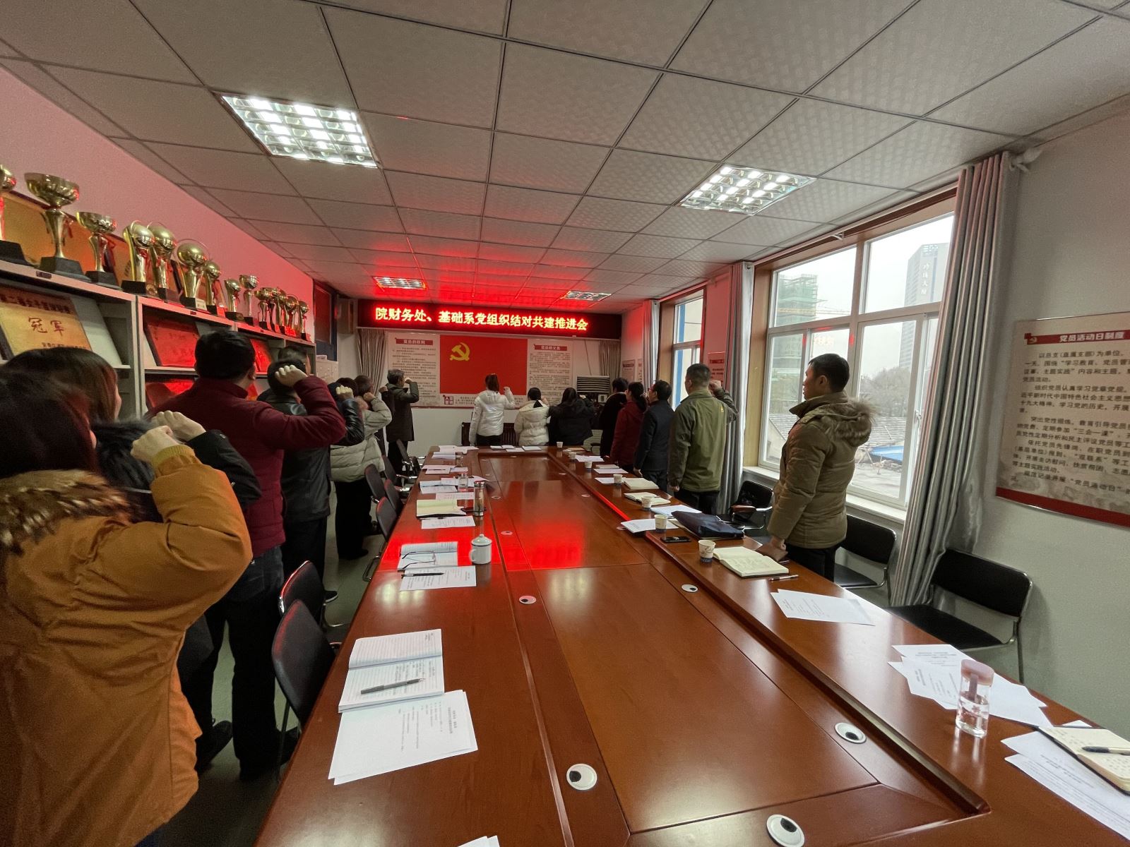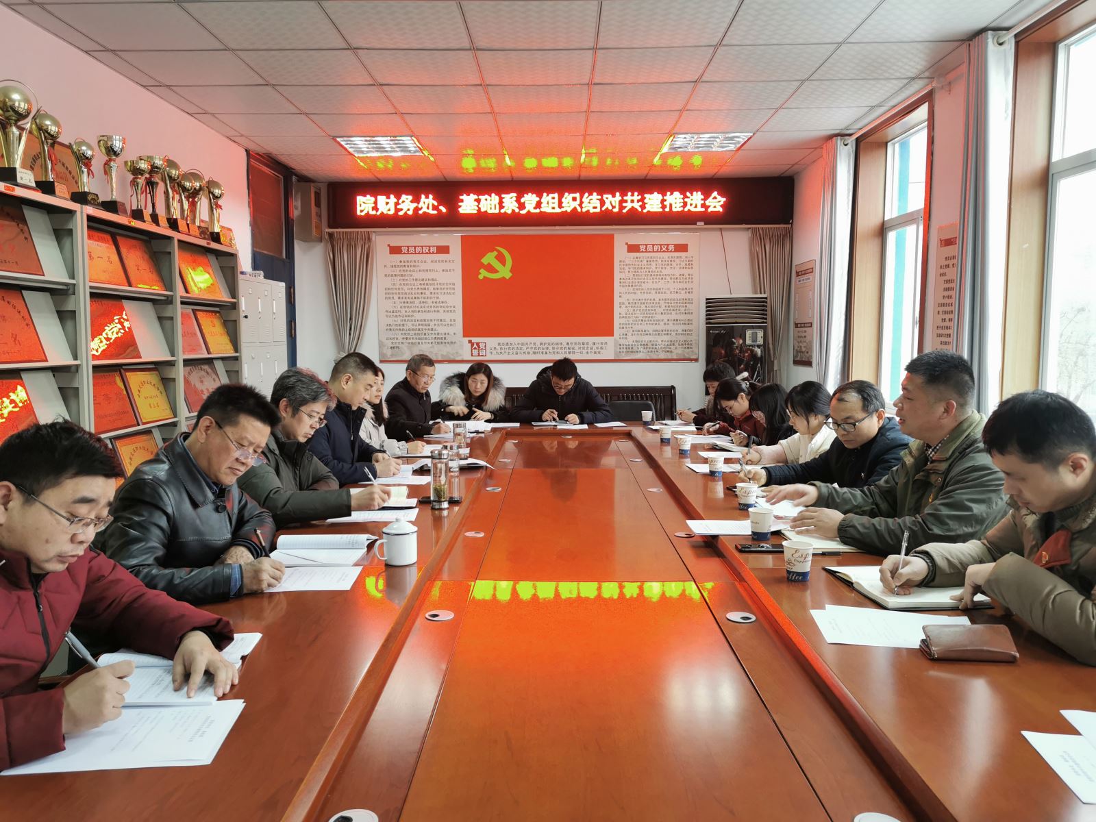 根據學院進一步加強基層黨組織黨建工作的部署, 12月23日下午,財務處、基礎系全體黨員開展主題黨日活動,召開黨組織結對共建推進會及黨的十九屆五中全會精神專題研討會。