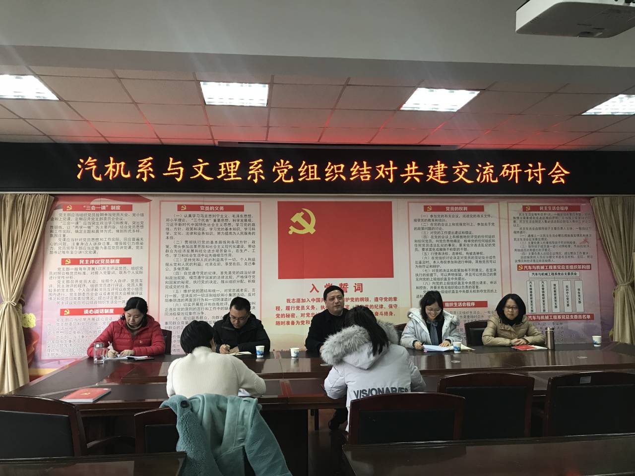 為進(jìn)一步落實(shí)學(xué)院黨建工作部署,持續(xù)做好巡視整改工作,加強(qiáng)黨支部黨建工作交流,共同提高黨建工作水平,12月25日,文理科學(xué)系與汽車與機(jī)械工程系召開(kāi)黨組織結(jié)對(duì)共建交流研討會(huì)。汽車與機(jī)械工程系黨總支書(shū)記李家林、文理科學(xué)系黨總支副書(shū)記、副主任王玨、文理系學(xué)生黨支部書(shū)記趙茹、汽機(jī)系實(shí)訓(xùn)中心黨支部書(shū)記黃智勇、汽機(jī)系學(xué)生黨支部書(shū)記趙婧等出席會(huì)議,會(huì)議由李家林主持。