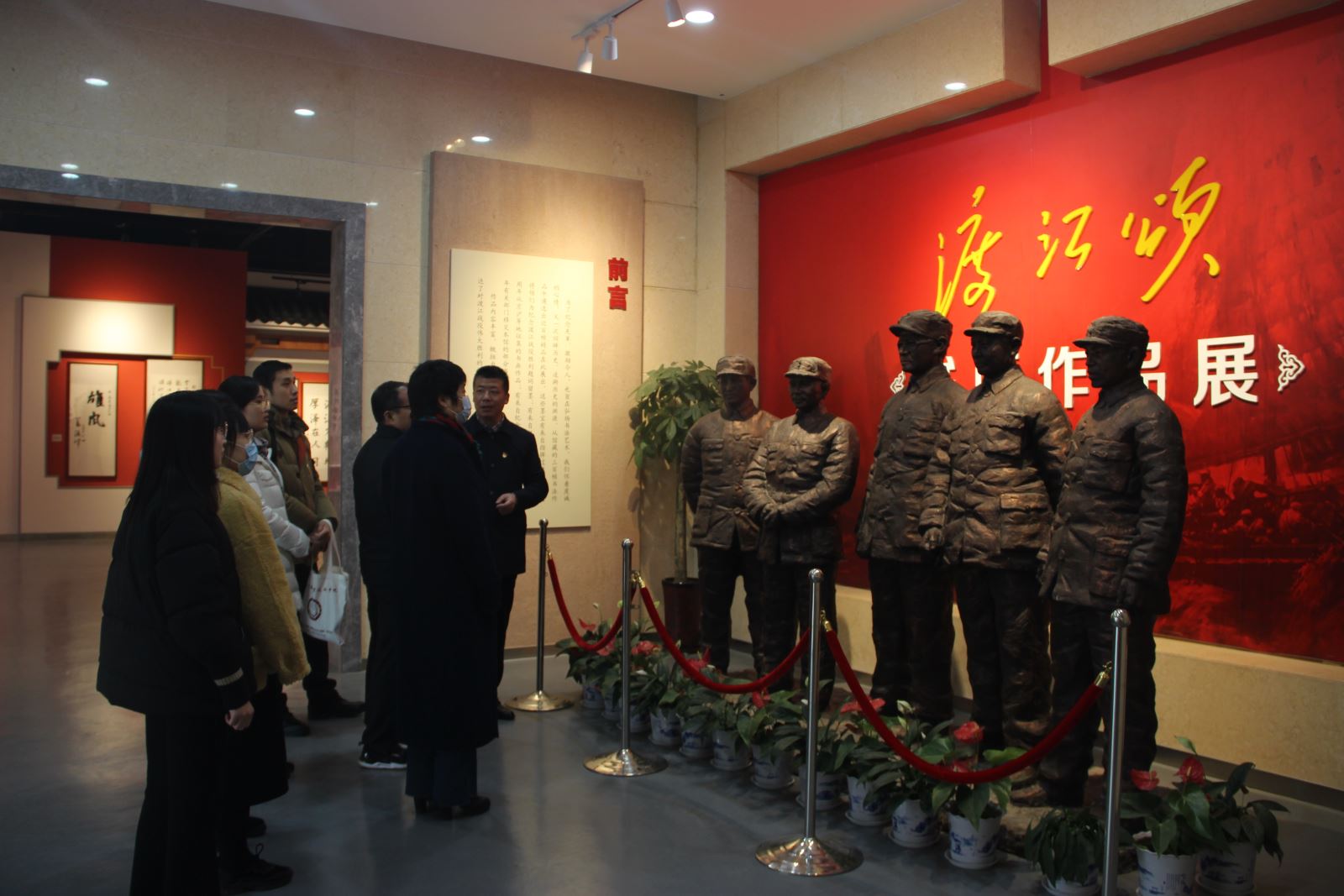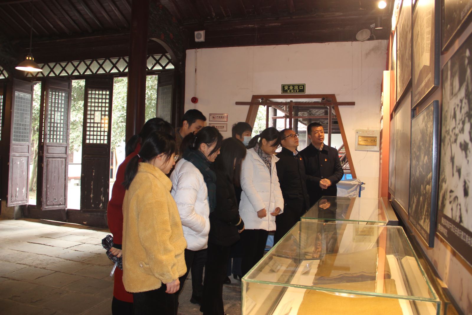 黨員們依次參觀了參謀處舊址、《渡江頌》書畫展廳、總前委舊址、華東局舊址。隨步到處一派青磚黛瓦、斑墻礫石,歷史氣息撲面而來。這里收藏并陳列著渡江戰役及解放戰爭期間的各種槍支、槍套、斧頭、報刊、肩章、被褥和各種生活用品,以及曾經在這里參加渡江戰役的同志的回憶錄和訪談錄,在一件件浸透著歷史記憶的文物面前,我們的眼前仿佛又看見“槍林彈雨、萬舟齊發”的磅礴氣勢,耳畔好像又聽到“炮火轟鳴、軍號嘹亮”的慷慨激昂。“鐘山風雨起蒼黃、百萬雄師過大江,虎踞龍盤今勝昔,天翻地覆慨而慷”偉人的聲音透過時空傳來……