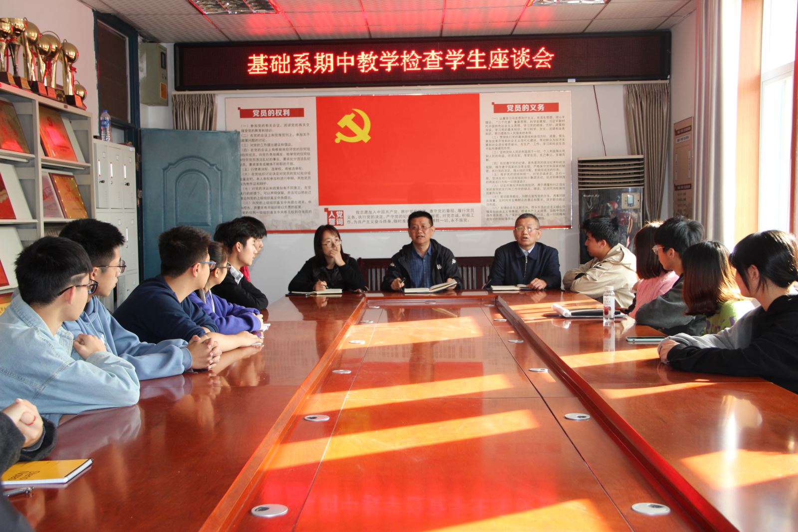 為規范教學環節,提升教學水平,保證教學質量,為學生提供良好的育人環境。根據學校教學工作統一安排,近期,基礎系以隨機聽課、檢查教案、召開學生座談會、教師座談會等形式,落實期中教學檢查工作。