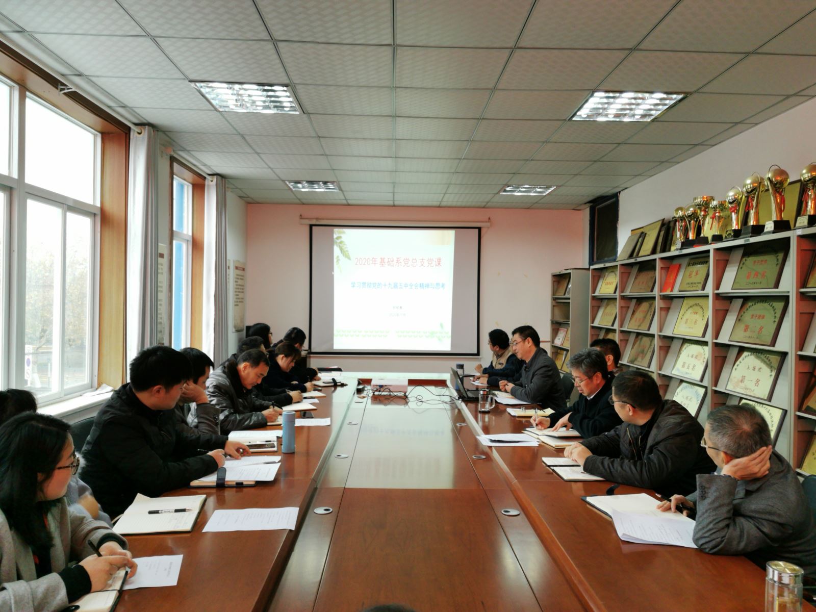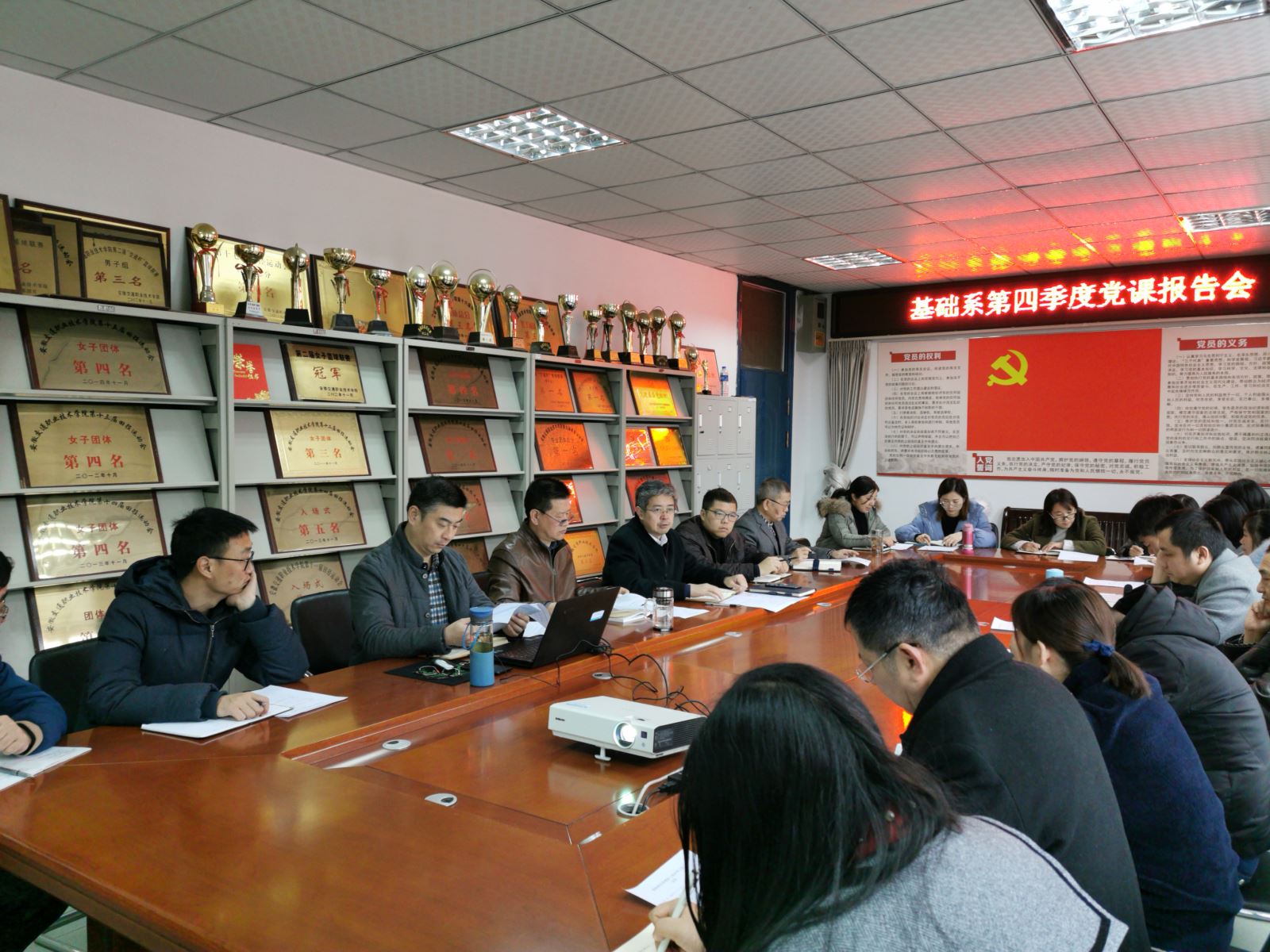 為落實常態化的政治理論學習制度,進一步提高教職工政治理論水平,11月25日,基礎系召開全體教職工政治學習會暨第四季度黨課報告會。系黨總支書記邵登泰主持,系黨總支副書記、系主任楊柳青主講。