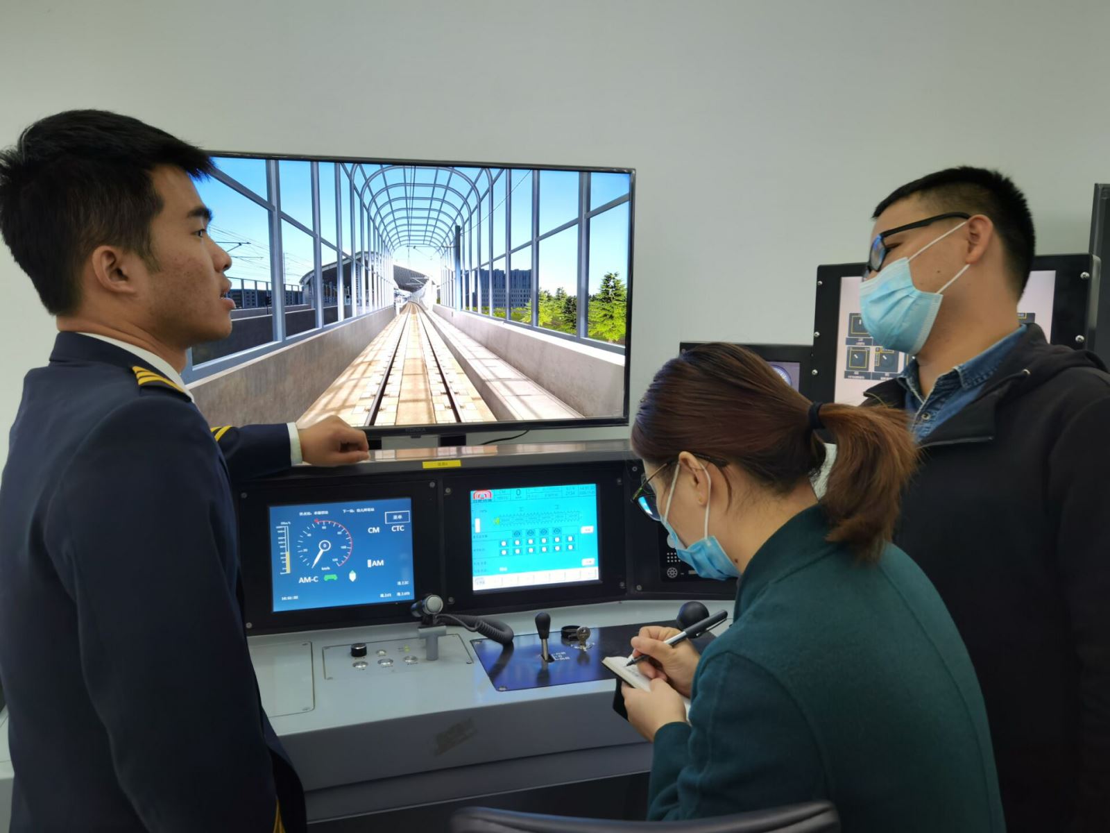 活動中,韓露帶領大家一邊參觀磨店車輛段電客車模擬駕駛室、DCC、派班室,一邊就軌道交通的專業建設和實驗室建設等問題與工作人員進行了深入的探討與交流,同時看望慰問了城信系優秀畢業生及2018級實習學生。
