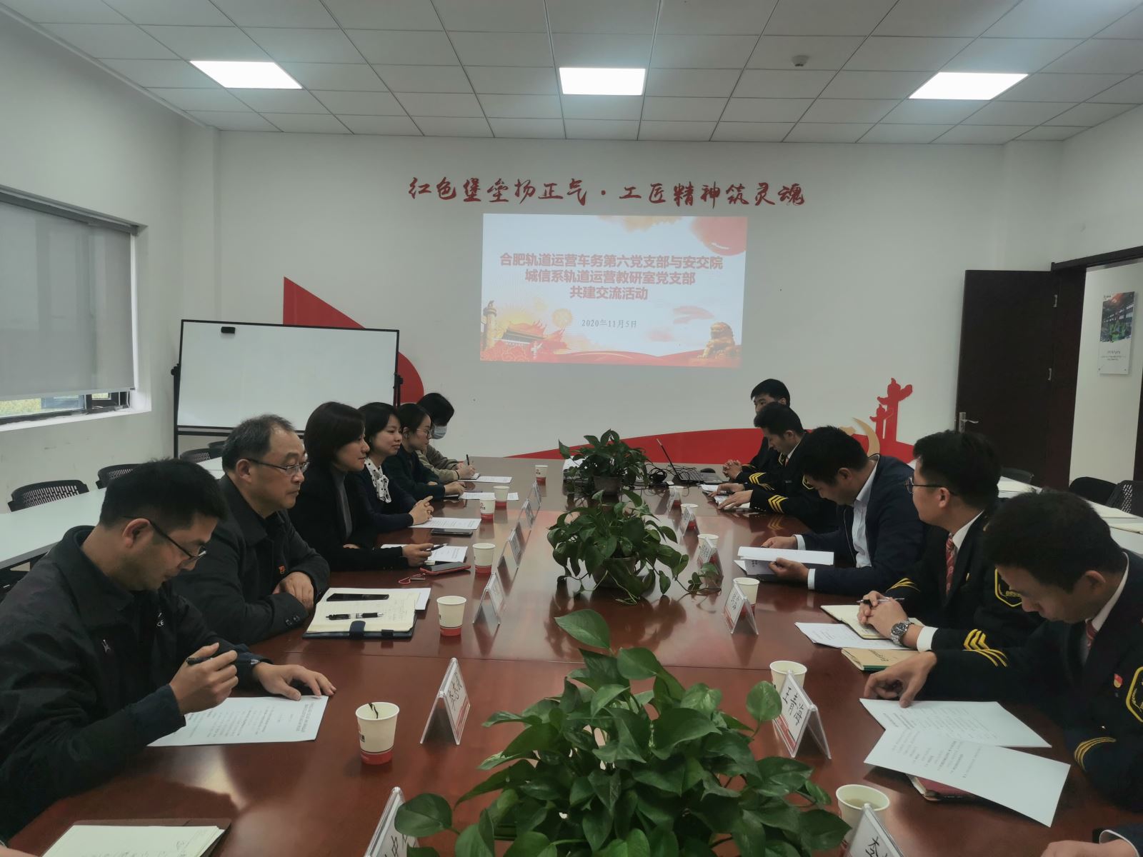 為進一步深化校企合作,共同探索新時代下黨建共建的新思路、新模式,11月5日下午,城信系黨總支書記汪倩、系主任李銳、軌道運營教研室黨支部書記李志成、支委楊婷婷及部分黨員老師前往合肥軌道交通集團有限公司車務黨總支第六黨支部開展校企黨組織共建活動。合肥軌道交通集團有限公司運營分公司車務處副處長高漢祥、乘務三中心主任韓露、車務黨總支第六黨支部書記錢亞楠等同志參加了本次活動。