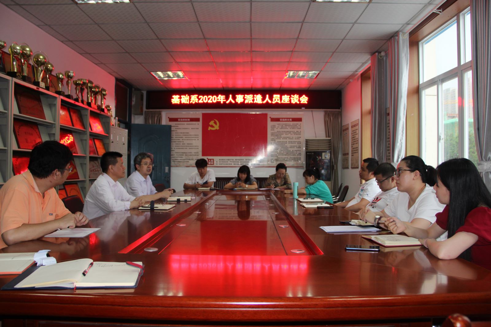 為促進專題民主生活會理論成果轉化為實踐,落實為民宗旨的責任,密切聯系基層教師,6月28日,基礎系召開了2020年人事派遣教師座談會。系黨總支書記邵登泰主持會議,副主任劉中平出席會議,全體人事派遣教師參加。