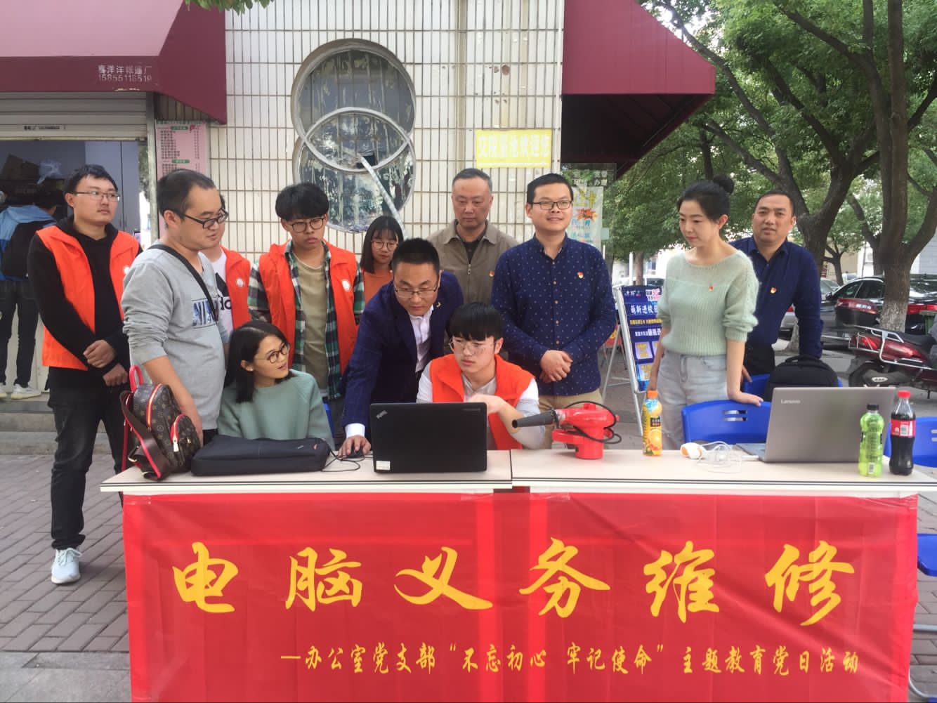 11月1日下午,按照“不忘初心、牢記使命”主題教育安排,辦公室黨支部與院計算機協會聯合開展“義務維修電腦”主題黨日活動,在校園南區(qū)、北區(qū)食堂門口設置服務臺,采取現場服務、上門服務等形式幫助全院教職工和離退休職工義務維修辦公、家用電腦,以實際行動踐行初心和使命。