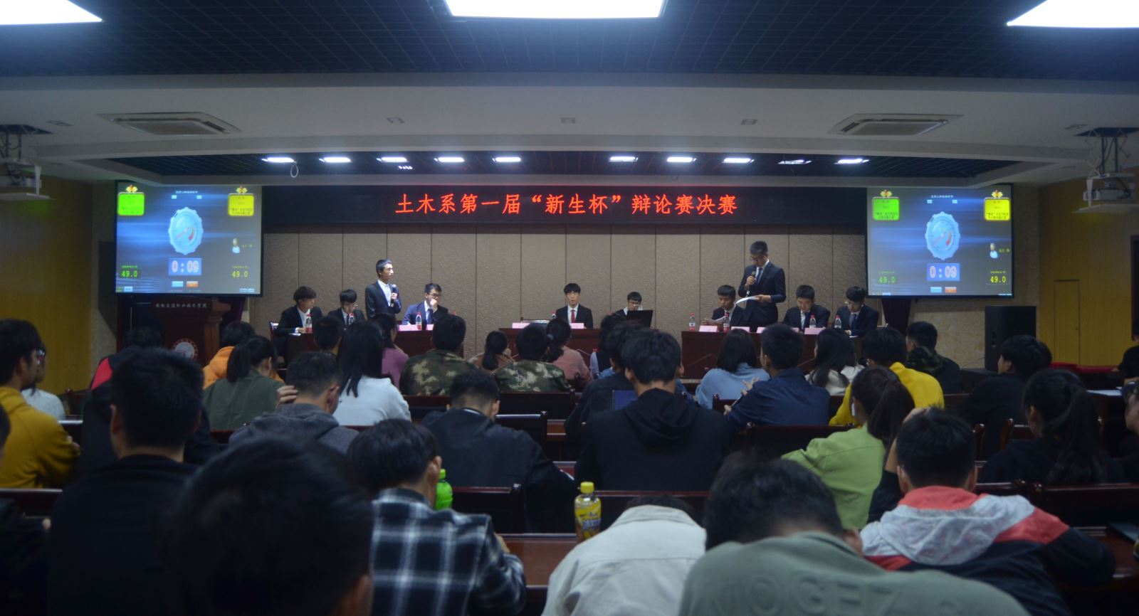 慷慨陳詞抒己論,唇槍舌戰(zhàn)決弈時(shí)。11 月 5日晚,由土木系青春思辨社主辦的第一屆“新生杯”大學(xué)生辯論賽決賽舉行,土木系部分師生觀看了比賽。