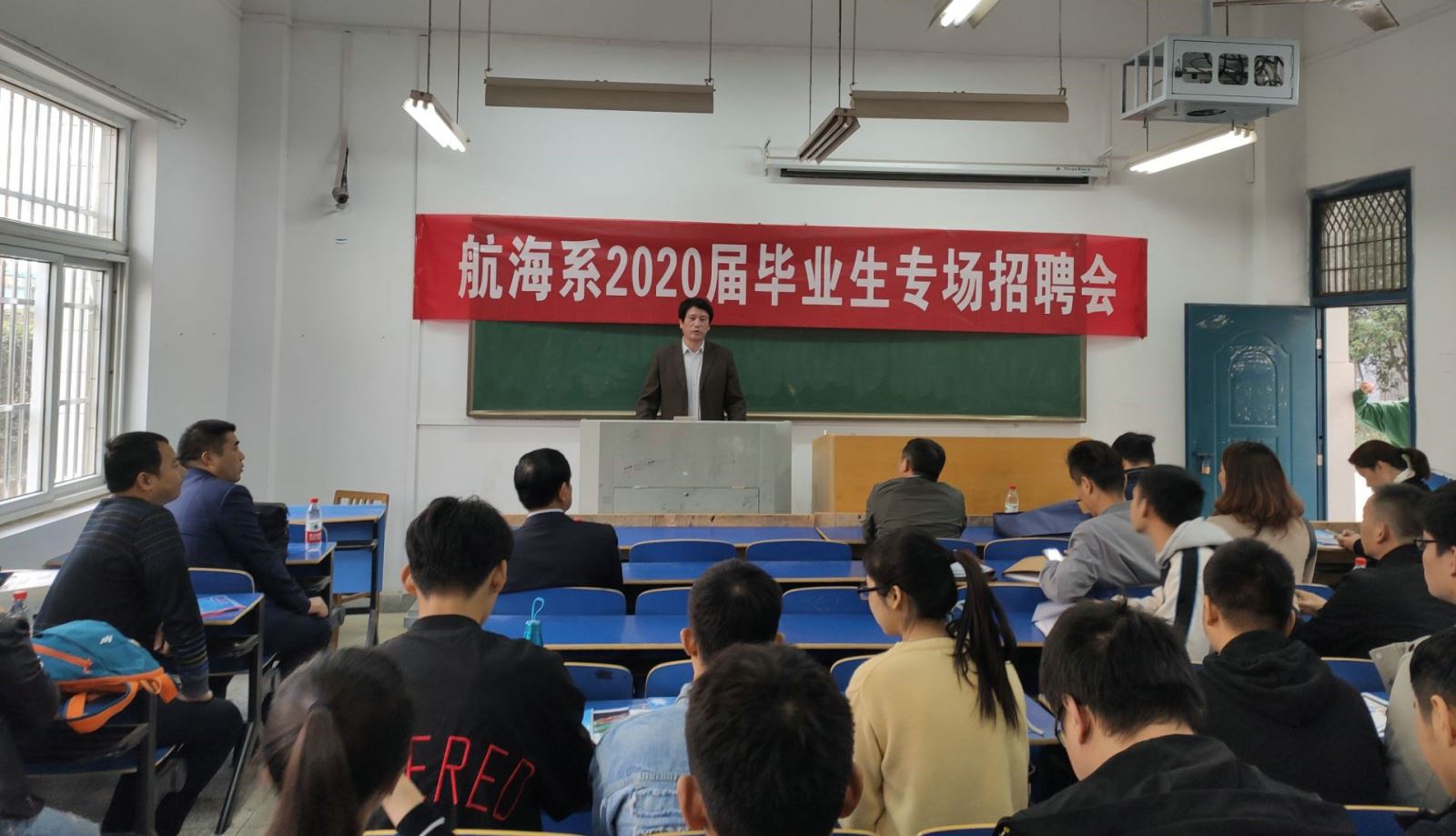 為進一步做好航海類畢業生就業服務工作,11月8日,航海系舉辦2020屆畢業生專場招聘會,航海系黨支部書記陶權主持會議。上海中船海員管理有限公司、上海金水灣航運發展有限公司、廈門海隆對外勞務合作有限公司、南京長航油運海員服務有限公司等15余家企業前來招聘。