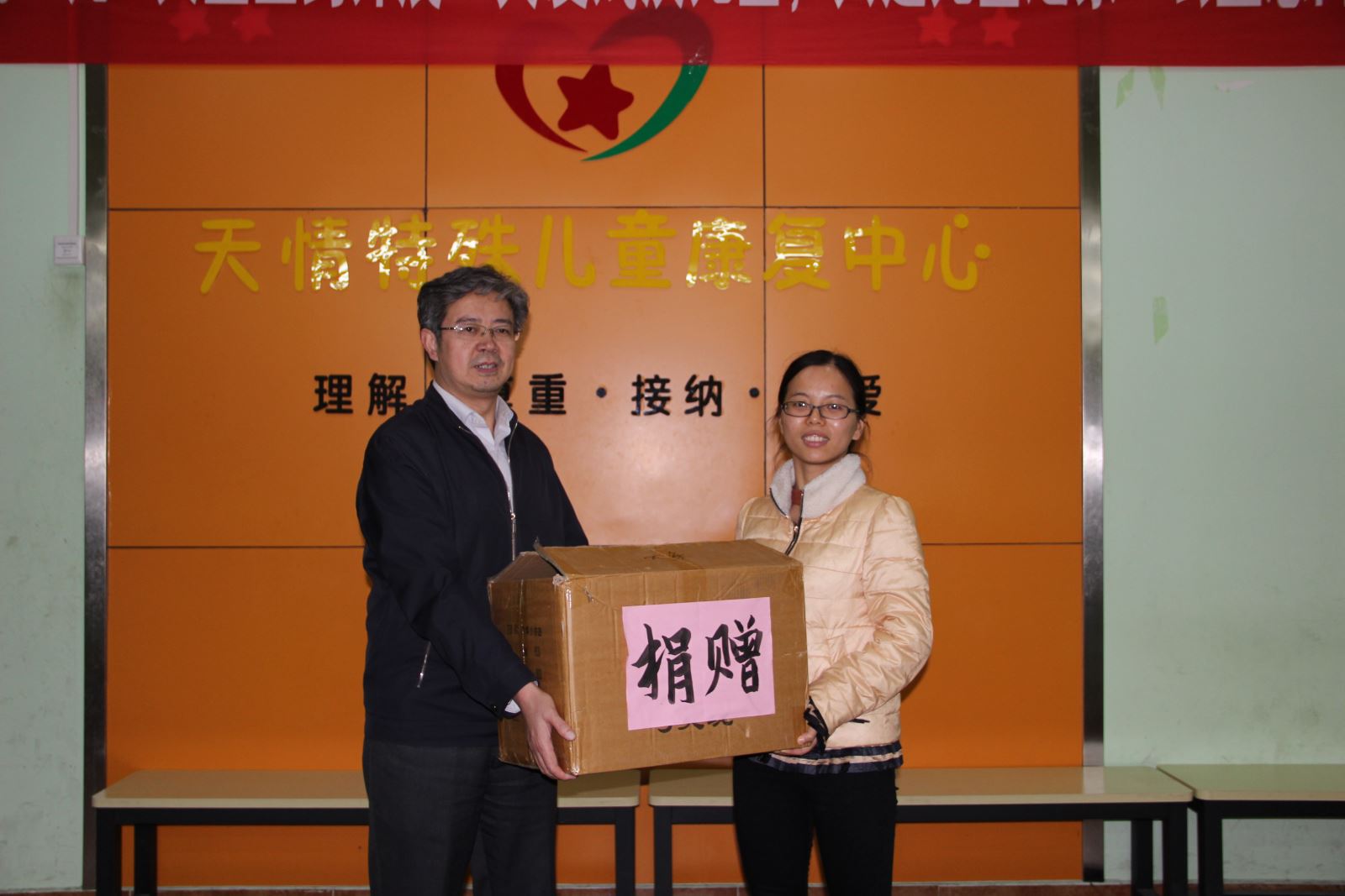 了解到孩子們的康復過程和康復成效后,邵登泰對康復中心老師在工作中付出的愛心和耐心表示了由衷的敬佩,對孩子們表達了衷心的祝福,并表示基礎(chǔ)系將長期將志愿活動進行下去,愿意根據(jù)孩子們的需要做力所能及的事。隨后,邵登泰代表基礎(chǔ)系向康復中心捐贈特殊兒童康復訓練器械和教學用具。