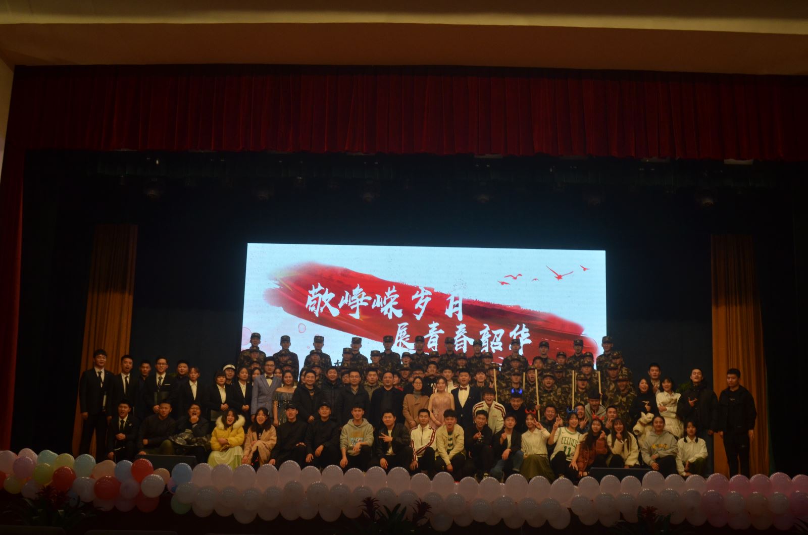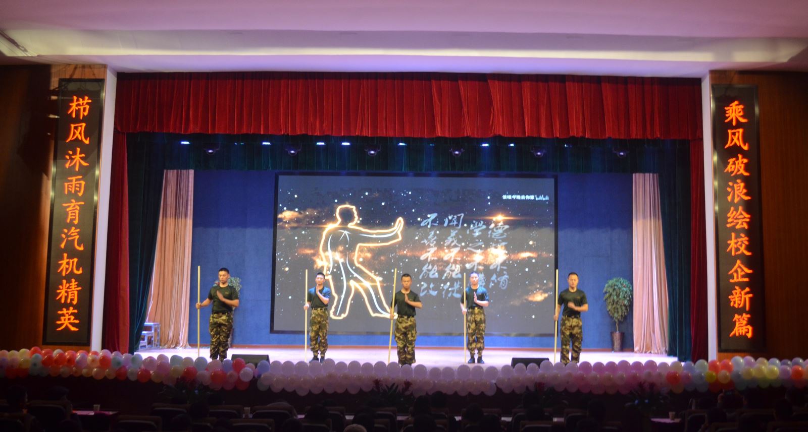 晚會在激情洋溢的開場舞中拉開帷幕。緊接著相聲《今非昔比》迅速將現場觀眾帶入了歡快的喜劇氛圍中。話劇《五四春潮》(節選)展現了汽機學子強烈的家國情懷。剛勁有力的武術表演展示了士官生過硬的軍事素養。軍歌合唱《強軍戰歌》彰顯了士官班同學以青春奮斗的姿態投身國防建設事業的奮斗激情……。整場晚會歌舞交錯,相聲小品輪番登場,現場高潮迭起掌聲不斷,為同學們帶來了一場震撼的視聽盛宴。