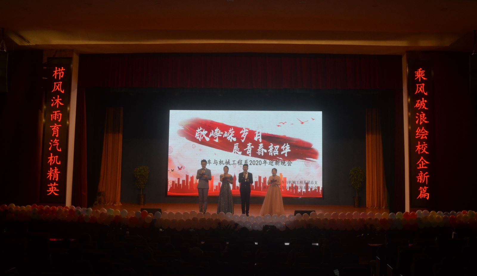 櫛風沐雨育汽機精英,乘風破浪繪校企新篇。12月15日晚,由汽車與機械工程系團總支主辦,汽車與機械工程系團總支學生會承辦的“敬崢嶸歲月 展青春韶華”2020年迎新晚會在南區大禮堂舉辦。系主任梁洪波,系黨總支書記李家林,系副主任湯峰、黃智勇,系主任輔導員王玨及新生、新生輔導員一同觀看了演出。