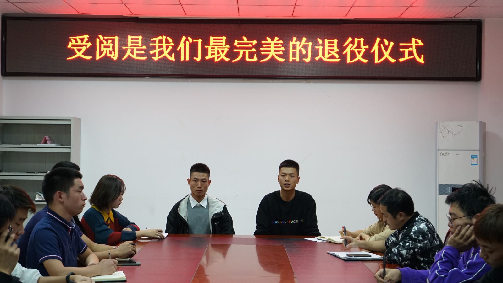 10月22日晚,參加國慶大閱兵的樊磊同志(預備役部隊方隊七排面十八名)和張凱奎同志(37炮三炮手)一同返回校園,和交院師生一起交流軍旅生活和受閱感受。學生處(團委)老師和院系學生干部代表參加座談會。