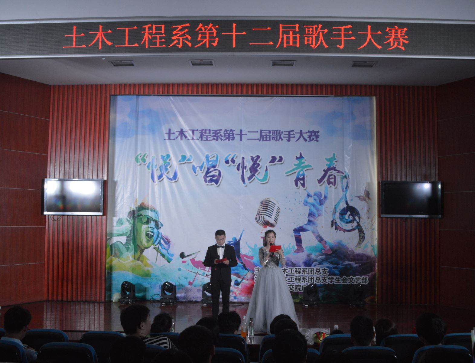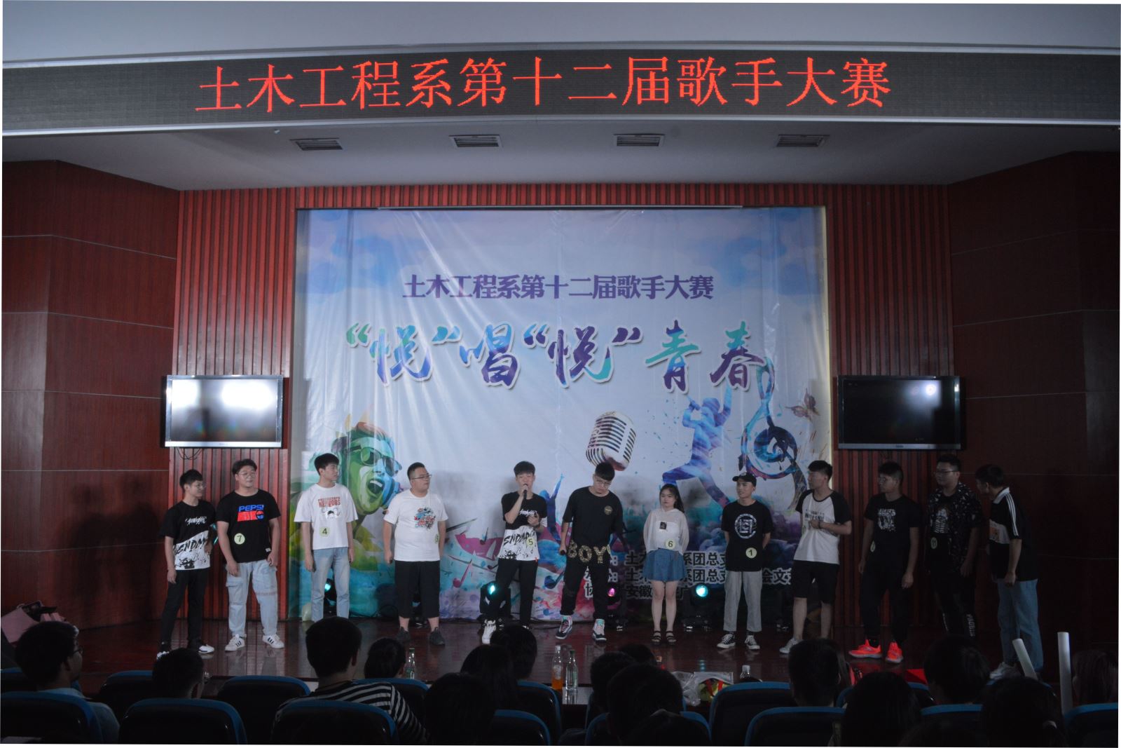 為繁榮校園文化生活,活躍校園文化氛圍,6月11日晚,土木工程系第十二屆歌手大賽在八角樓舉行。安徽廣播電視臺綜藝頻道導演劉璐,安徽省音樂家協會會員李麗娟,安徽藝術職業學院藝術中心主任副教授王琰等擔任大賽評委。經過層層選拔,12位選手走上決賽舞臺。