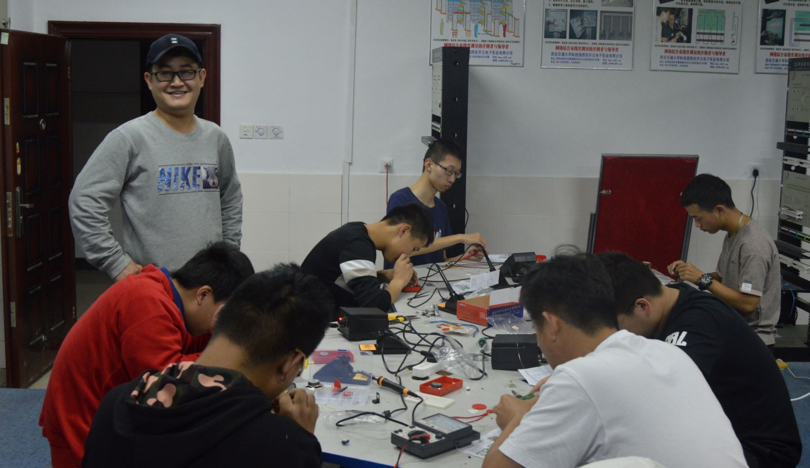 楊振宇除了是有著豐富一線教學(xué)經(jīng)驗(yàn)的專業(yè)課教師、有著諸多學(xué)生工作履歷的輔導(dǎo)員,他還任機(jī)電教研室黨支部書記、計(jì)算機(jī)實(shí)訓(xùn)室中心主任,兼任學(xué)院計(jì)算機(jī)協(xié)會(huì)、電子協(xié)會(huì)的指導(dǎo)老師。去年電子協(xié)會(huì)成立之初,需要一些資金購(gòu)置設(shè)備開(kāi)展活動(dòng),楊振宇自掏腰包采購(gòu)了機(jī)器人設(shè)備、單片機(jī)設(shè)備、電烙鐵、嵌入式開(kāi)發(fā)板等器件。他非常關(guān)心社會(huì)福利事業(yè),通過(guò)電子產(chǎn)品義賣等方式,自籌了1200元購(gòu)置了學(xué)習(xí)用品,用于捐贈(zèng)合肥市春雷自閉癥兒童學(xué)校的孩子們。城信系實(shí)訓(xùn)中心的實(shí)驗(yàn)員張新意說(shuō),“楊老師經(jīng)常為城信系實(shí)驗(yàn)室建設(shè)出謀劃策,在系里實(shí)驗(yàn)室建設(shè)過(guò)程中,好多設(shè)備位置有變動(dòng),他都是親自指揮,經(jīng)常加班到很晚才回家?!薄皸罾蠋熃?jīng)常帶領(lǐng)我們年輕教師做項(xiàng)目、編寫教材,對(duì)我們新入職的年輕老師成長(zhǎng)非常有幫助。”同事王怡說(shuō)。