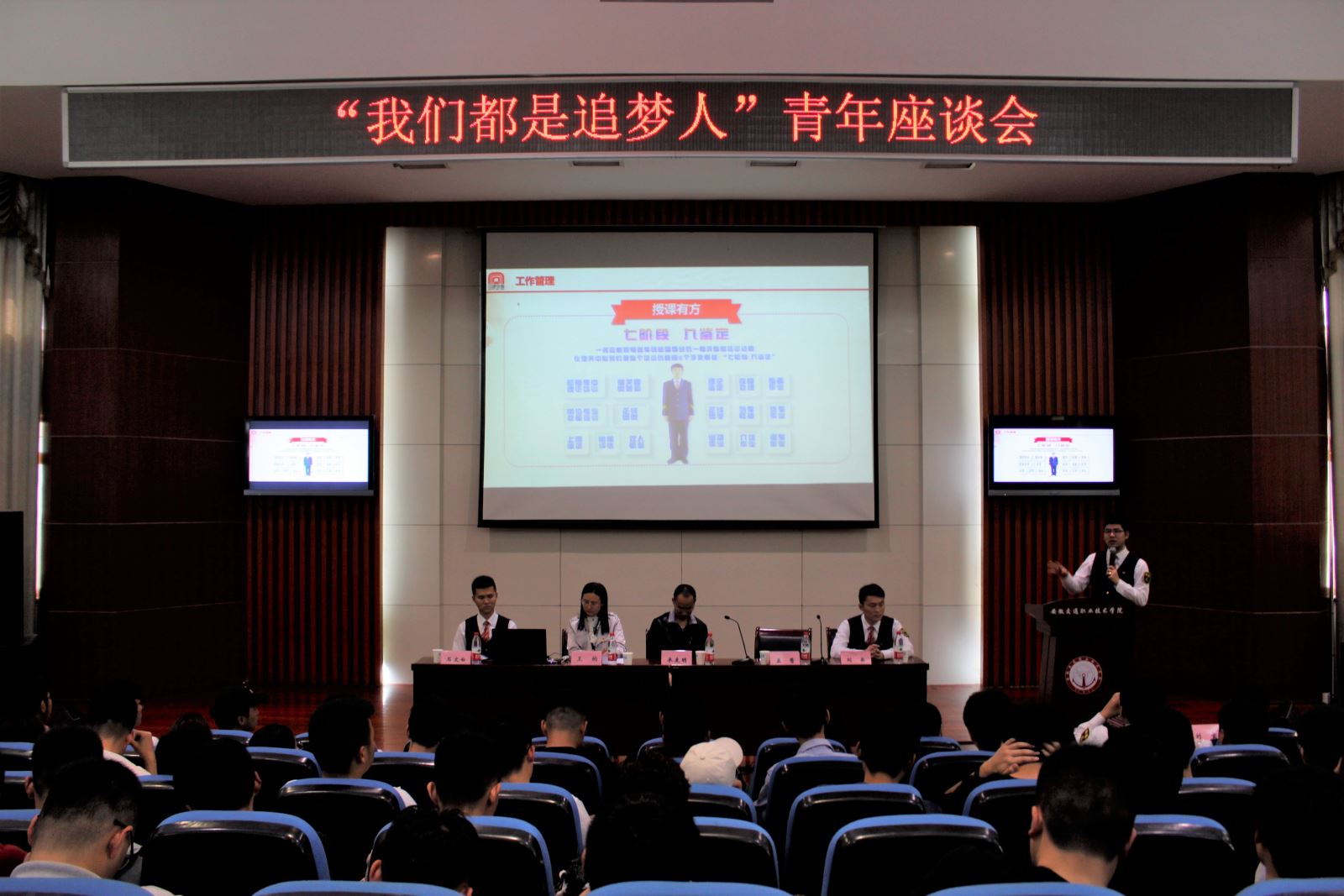 4月24日下午,車務第四團支部成員一行7人受邀前往學院,在學術報告廳面向城信系17、18級軌道專業(yè)的學生開展一場 “我們都是追夢人”主題座談會。座談會上播放了乘務工作場景的視頻,正在跟崗實習的16級訂單班學員夏超、劉雅婷作為代表發(fā)言,孟驁就乘務方面各崗位的工作情況進行專題宣講,最后的互動環(huán)節(jié)是學生提問,將現(xiàn)場氣氛推到高潮。