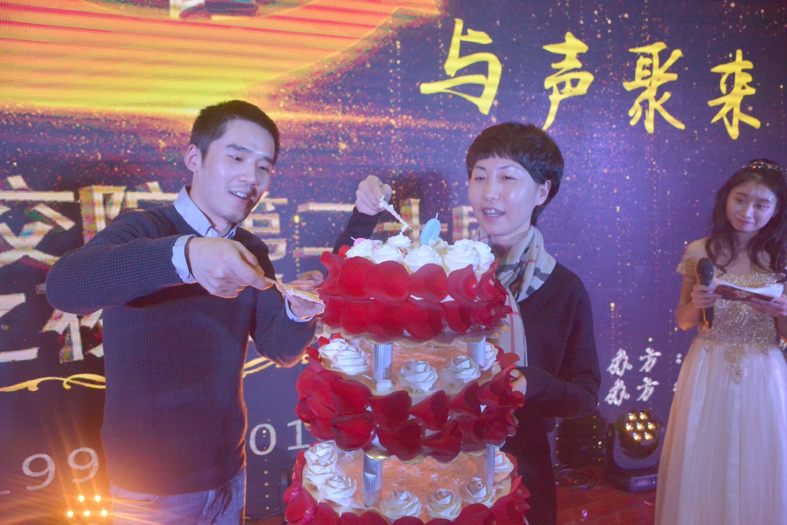 比賽最后,由安徽音樂廣播總監安妮按下臺慶25周年啟動按鈕,并向交院廣播傳達美好祝愿,喻謹和第十屆主持人大賽冠軍錢洋共同切下慶典蛋糕。(學生處 余雪輝)