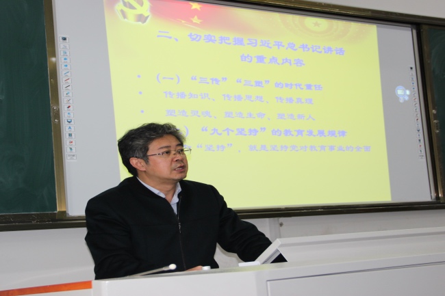 為推進師生深入理解把握全國教育大會精神,根據學院統一安排, 12月5日下午,基礎系召開全國教育大會精神宣講會。系黨總支書記邵登泰以“學習貫徹全國教育大會精神,扎實做好中高職銜接工作”為題作宣講報告。系教職工及部分學生代表參會。