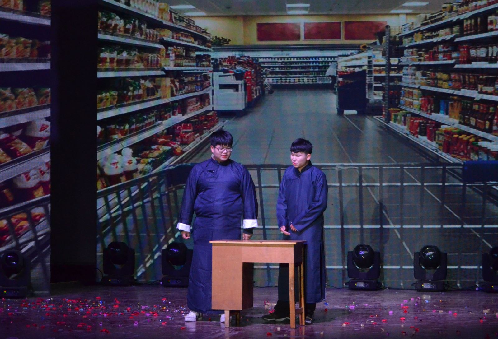 伴隨著一段記錄基礎系發展的視頻,晚會拉開帷幕。視頻全景展示了基礎系歷年的發展變化,以生動的形式向學生介紹了系部歷史、現狀、成就、特色。隨后,歌曲、舞蹈、朗誦、小品、相聲、舞臺劇等各種形式的節目接連登臺,節目精彩紛呈,現場氣氛熱烈。