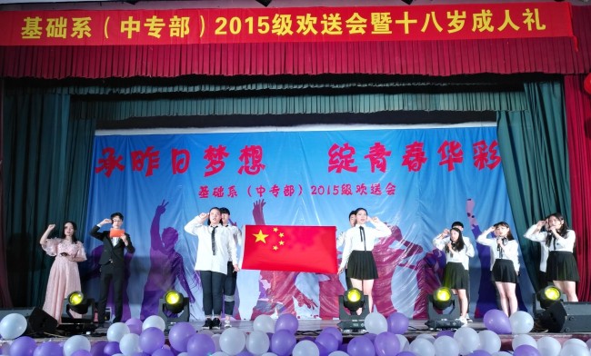 6月24日晚,基礎(chǔ)系(中專部)于南區(qū)禮堂舉行“2015級(jí)歡送會(huì)暨十八歲成人禮”。儀式上,基礎(chǔ)系主任梁洪波對(duì)學(xué)生寄語(yǔ)致辭,系黨總支書記邵登泰攜全體教職工及學(xué)生觀看晚會(huì)。