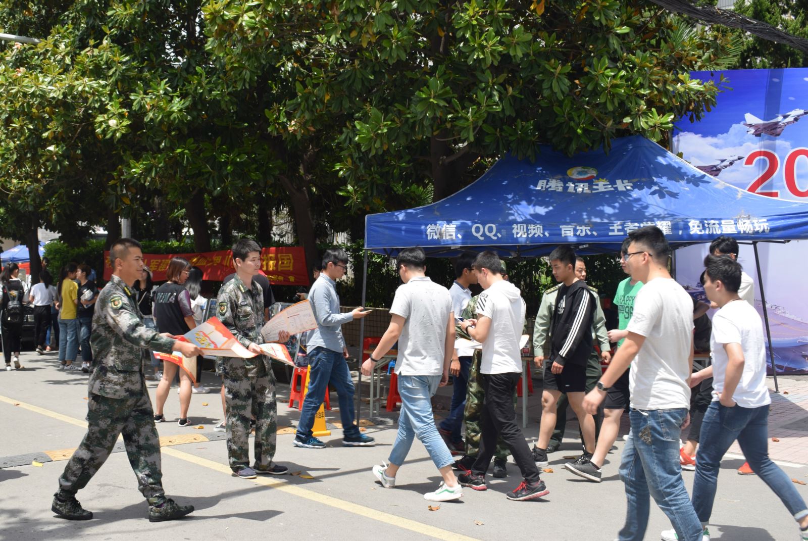 活動(dòng)中,宣傳人員通過(guò)設(shè)立咨詢(xún)臺(tái)、懸掛橫幅、電子屏滾動(dòng)宣傳、擺放展板、發(fā)放征兵宣傳手冊(cè)、現(xiàn)場(chǎng)咨詢(xún)等形式,向同學(xué)們?cè)敿?xì)介紹了2018年的征兵條件、報(bào)名流程、入伍程序和大學(xué)生入伍優(yōu)惠政策等,并就體檢、政審、預(yù)定兵時(shí)間安排、學(xué)費(fèi)補(bǔ)償、學(xué)籍保留、轉(zhuǎn)專(zhuān)業(yè)及未來(lái)發(fā)展等同學(xué)們普遍關(guān)心的熱點(diǎn)問(wèn)題進(jìn)行了一一解答。