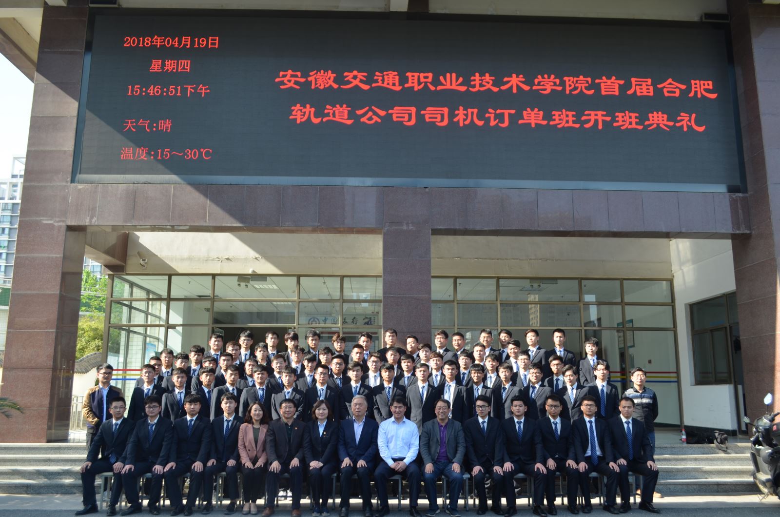 典禮上司機1班班長孫浩作為學生代表做了發言。會后學院院長張國棟和與會領導、同學們合影留念。此次合肥地鐵司機訂單班的順利開班標志著學院與合肥地鐵公司的合作進一步深化。