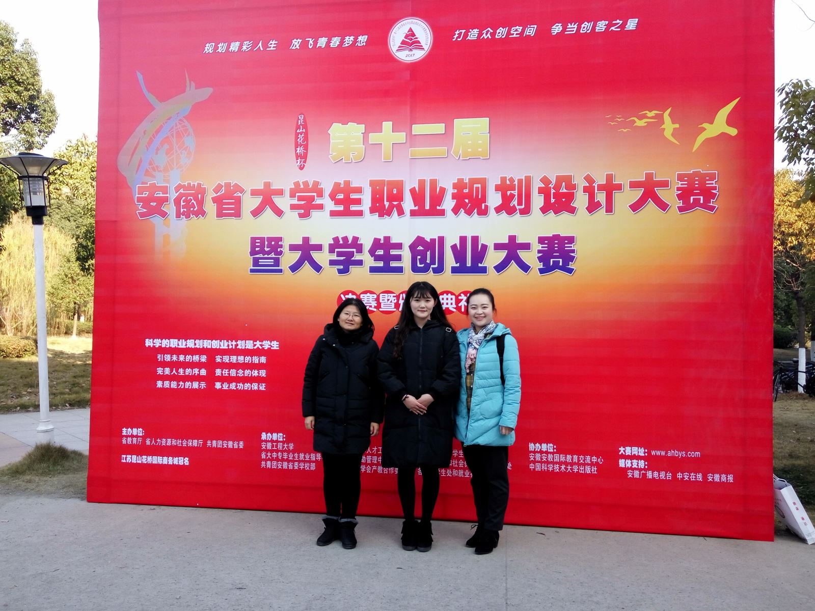 2017年12月8日,由安徽省教育廳、安徽省人力資源和社會保障廳、共青團安徽省委聯合主辦的“昆山花橋杯”第十二屆安徽省大學生職業規劃設計大賽暨大學生創業大賽總決賽在安徽工程大學落下帷幕。經過激烈角逐,代表我院參賽的我系16級旅游專業學生孔麗同學的項目《行者無疆-小孔同學的職業生涯規劃之旅》(指導老師:汪莉、章筱蕾和陳悅)獲得銀獎。