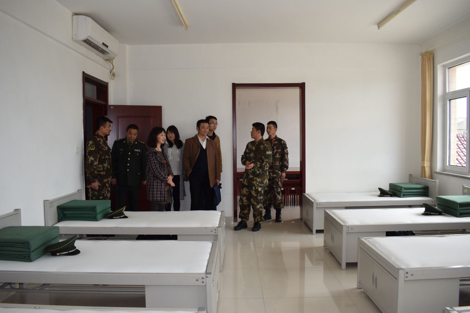 隨后,大家實地參觀了定向培養士官生的內務情況、觀看了士官生們表演的精彩合唱,短短兩個月時間,同學們在內務管理、作風紀律和體能方面取得的進步讓老師們深感欣慰。