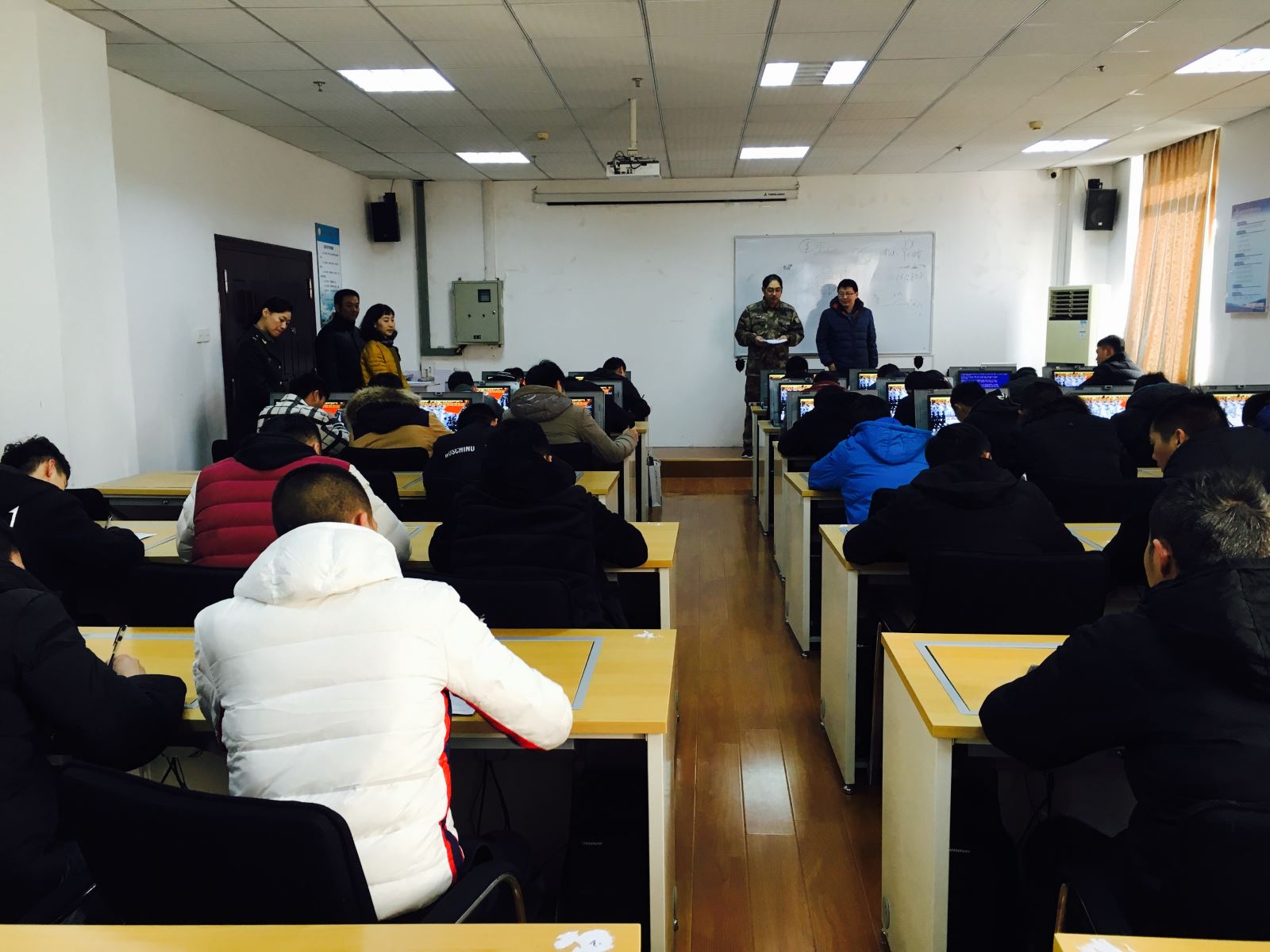 12月12日上午,全體士官班學生在信息樓進行了士兵職業基本適應性檢測(心理測試),區武裝部政工科科長于忠凱、學院學生處處長喻謹、副處長徐剛到達測試現場指導工作。