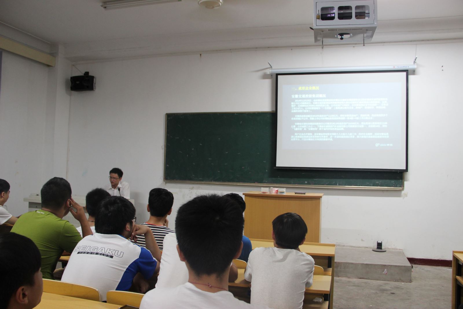 2015年5月18日晚七點,九二級校友楊群山先生,安徽高速驛達公司副總經理應邀回到闊別已久的母校,在南區一樓多媒體教室與學弟學妹做了交流與溝通。