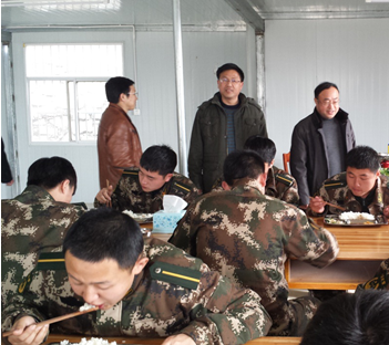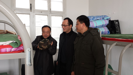 2015年1月24日上午九點,院黨委副書記、紀委書記陳明、人事處處長鄒建華、土木工程系主任王常才、系黨總支副書記陶權、系辦公室主任陳曉俊和系主任輔導員趙婧來到土木系位于六安市獨山鎮的實訓基地考察,14114班(士官班)全體學生正在實訓基地進行為期一周的實習。陳明副書記一行在實訓指導教師王守勝的陪同下參觀了學生的生活住所和山上的實訓處,陳書記饒有興致地聽取了王老師對實訓項目的解說,并向同學們問了一些專業上的問題。在山下的會議室里,聞訊特地從兩會會場趕回來的校企合作單位——安徽裕民公司的李總向陳書記等詳細介紹了合作項目,希望在院系領導的支持下實現共贏局面;陳書記也代表院系感謝裕民公司為學生們提供實訓的場地,幫助學生積累學習和生活經驗。