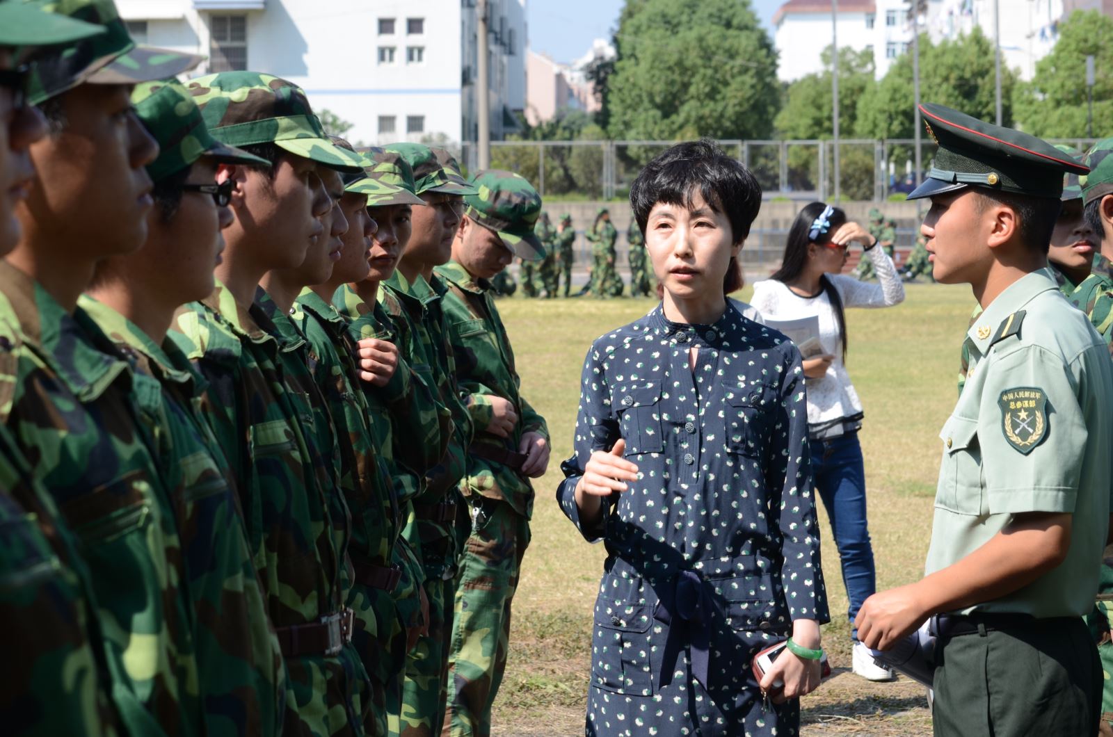 9月22日上午,城市軌道交通與信息工程系黨總支書記喻謹(jǐn)、副書記汪倩帶領(lǐng)學(xué)生管理人員和2014級新生輔導(dǎo)員代表來到學(xué)院北區(qū)操場2014級城信系新生軍訓(xùn)現(xiàn)場,慰問承訓(xùn)教官及看望新生。