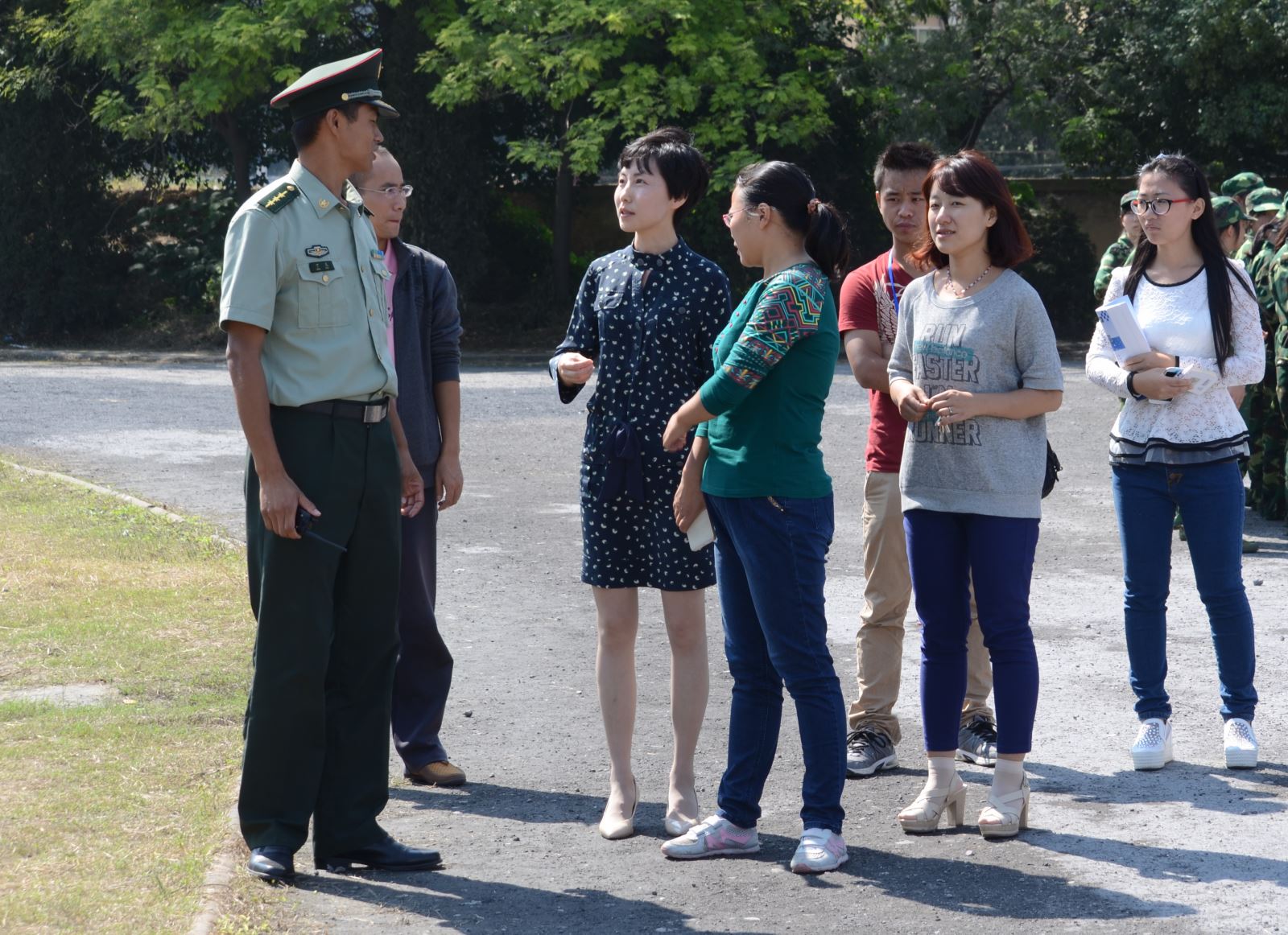 喻書記首先感謝教官們對學(xué)生的辛勤指導(dǎo)與訓(xùn)練,向教官表示衷心感謝和誠摯問候。隨后,喻書記一行看望了城信系軍訓(xùn)新生,與教官和新生們進(jìn)行了親切的談話,向他們詳細(xì)了解軍訓(xùn)的進(jìn)展情況和2014級新生軍訓(xùn)的新情況及其解決辦法。喻書記對同學(xué)們積極主動、刻苦訓(xùn)練的精神給予充分肯定。喻書記指出,軍訓(xùn)是學(xué)生步入大學(xué)的第一課,也是一門重要而意義非凡的課,通過軍訓(xùn)不但可以使同學(xué)們的身體受到鍛煉,而且可以磨練同學(xué)們的意志,培養(yǎng)他們吃苦耐勞、勇于拼搏、團結(jié)協(xié)作的精神,提高他們的綜合素質(zhì)和學(xué)習(xí)能力。同時,喻書記囑咐同學(xué)們在軍訓(xùn)期間一定要注意身體,勞逸結(jié)合,飲食正常,科學(xué)施訓(xùn)。希望同學(xué)們珍惜這次難得的特殊集體生活機會,嚴(yán)格要求自己、注意身體健康、科學(xué)接受訓(xùn)練,用心感悟軍隊精神,增強組織紀(jì)律觀念,培養(yǎng)團隊意識。