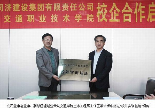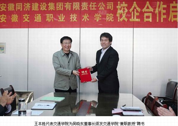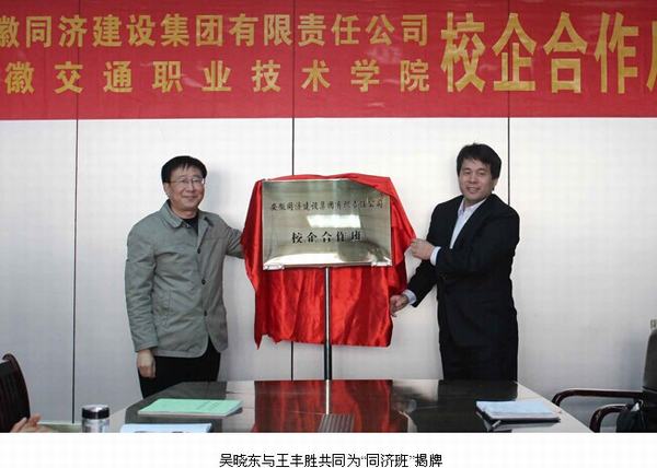 2014年11月4日下午,安徽交通職業技術學院與安徽同濟建設集團有限責任公司校企合作啟動儀式在交通學院舉行。副院長王豐勝,同濟公司董事長吳曉東,同濟公司董事會董事、副總經理趙業榮等領導出席簽約儀式,儀式由我院土木工程系主任王常才主持。