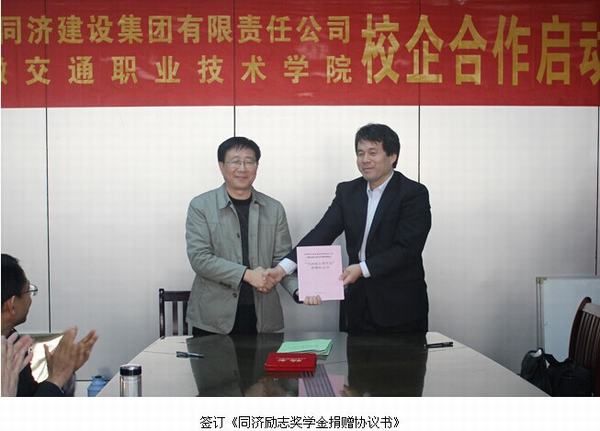 王豐勝副院長和同濟公司董事長吳曉東代表甲乙雙方在《校企合作協議書》及《同濟勵志獎學金捐贈協議書》上簽字。雙方約定合作辦學,在我院土木工程系建立“安徽同濟建設集團有限責任公司校企合作班”(簡稱:同濟班),我院在同濟公司設立“校外實訓基地”,實現校企專業共建、人才共育、合作就業、成果共享、合作發展,共同為社會培養優秀人才。同時,同濟公司在學院內設立“同濟勵志獎學金”,企業每年拿出五萬元人民幣獎勵我院品學兼優的學子。