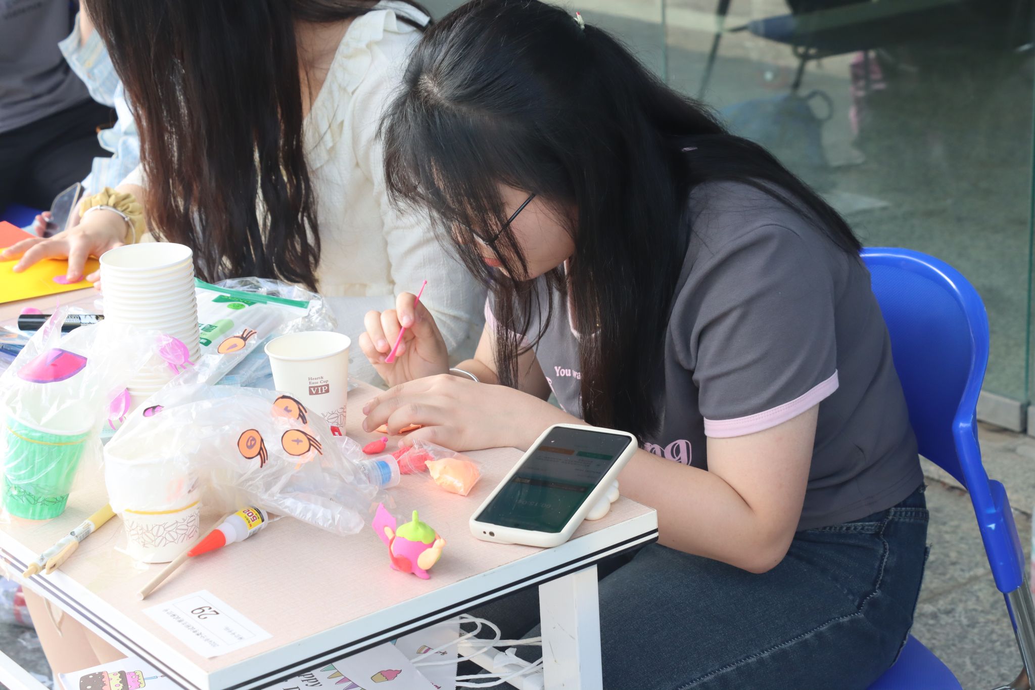 活動中,城信系志愿者來到朱崗社區,提前擺放好本次活動手工制作的樣品。在活動中,同學們引導社區居民充分發揮想象,以廢舊物品為材料,精心設計制作出滾動蝸牛、晴天娃娃等精美的手工藝品,既鍛煉了同學們的思維方式及動手能力,也增加了同學們的環保知識,寓教于樂,在“學”與“玩”的過程中,為環保貢獻出自己的力量。